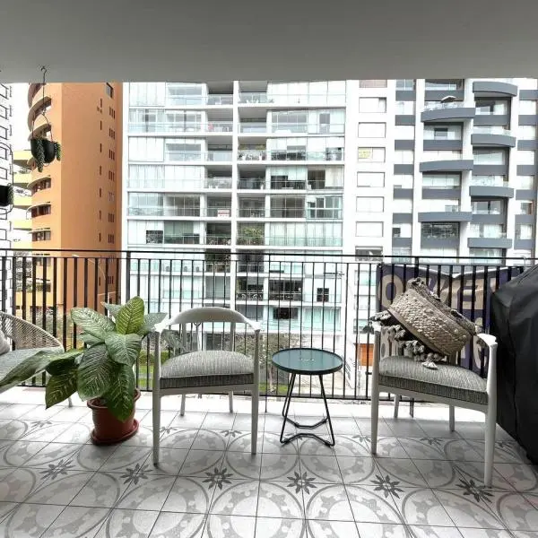 Excelente departamento con terraza cerca al golf y al contry club cerca a parque edificio de Armando Paredes living comedor con salida a la terraza tres dormitorios todos con baos incorporados bao de visitas estar familiar Aire acondicionado en el cuarto principal y walk in closet Internet fibra ptica cableado en todos los ambientes Ventanas anti ruido en todos los cuartos Rollers elctricos en la sala rollers importados en los cuartos rea comn sala de reuniones con jardn Deposito en el stano Cochera y