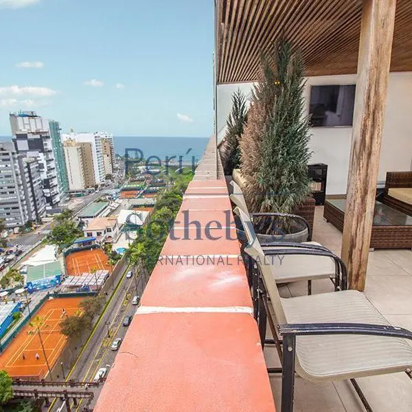 Lindo y Acogedor Departamento Dplex en Malecn Balta Miraflores Amplia sala con acceso a balcn y vista a bajada Balta y al mar Gran Terraza con techo sol y sombra zona de BBQ Bao de visitas Cocina de buen tamao con comedor de diario dormitorios dormitorio principal con walk in closet y bao baos rea de servicio Incluye estacionamientos