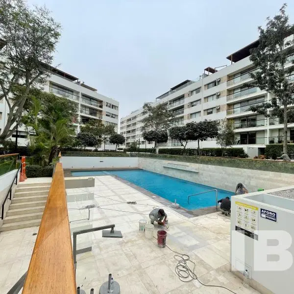 Lindo Dpto en venta en Condominio Puerta de Hierro Ascensor a pasadizo entrada principal con chapa con tarjeta y clave recibo sala comedor con aire acondicionado balcn bao de visita cocina con comedor de diario sala de estar convertido en gimnasio con aire acondicionado dormitorio principal con walk in closet mas un closet y bao con doble lavadero y tina ducha otros dos dormitorios con closet y comparten un bao con tina ducha area de lavanderia con cuarto y bao de servicio Casi todo el dpto fue remodelado pisos en recibo sala y comedor en mrmol papeles decorativos muchos detalles Incluye dos cocheras paralelas y un deposito en stano Areas comunes cocheras de visita amplio parque con juegos para nios amplia piscina abierta con poltronas sala de reuniones y juegos con kitchenette baos y area de terraza con bbq con jardin gym baos oficina administrativa Vale la pena visitarlo T C Referencial segn SBS