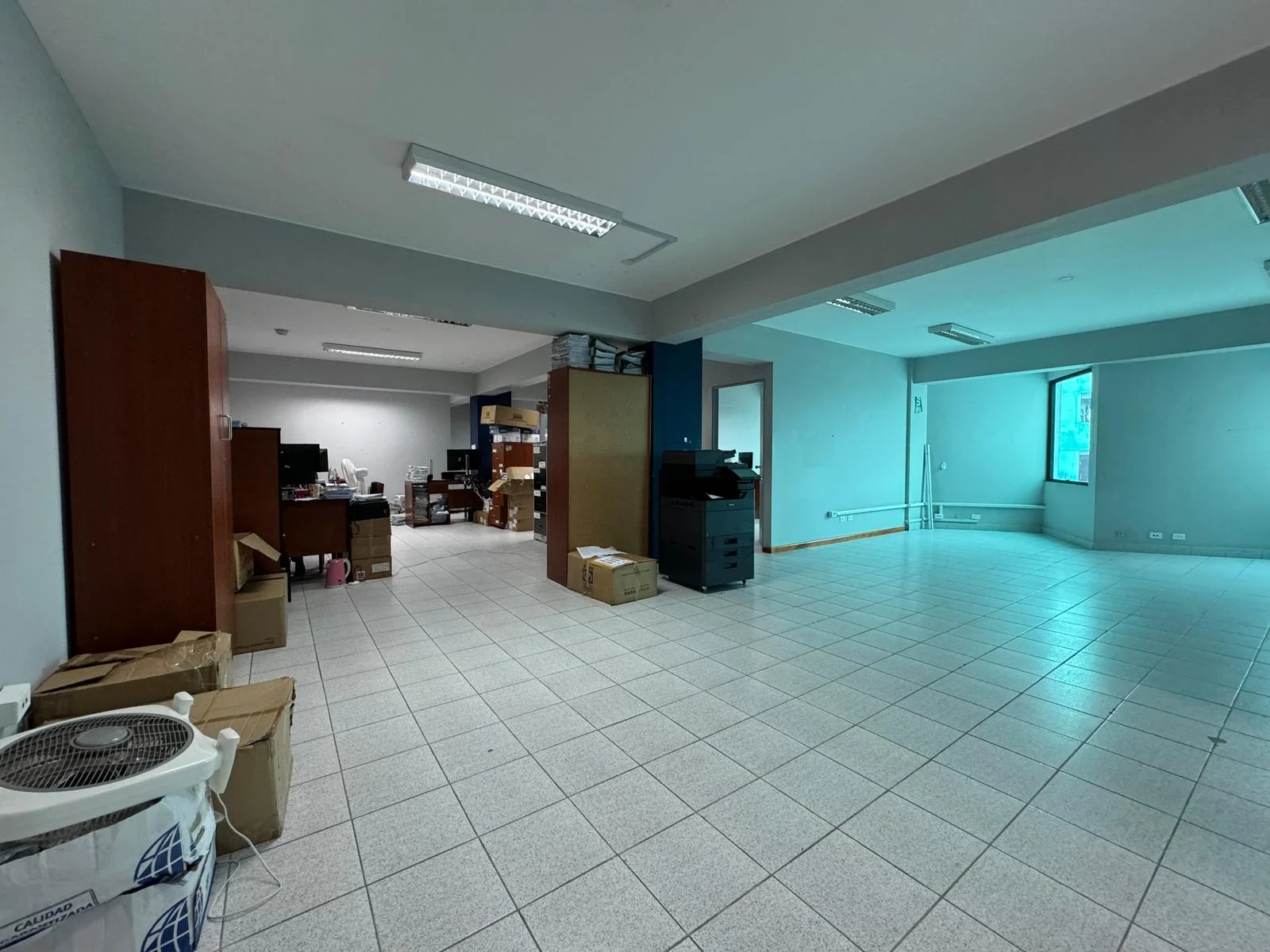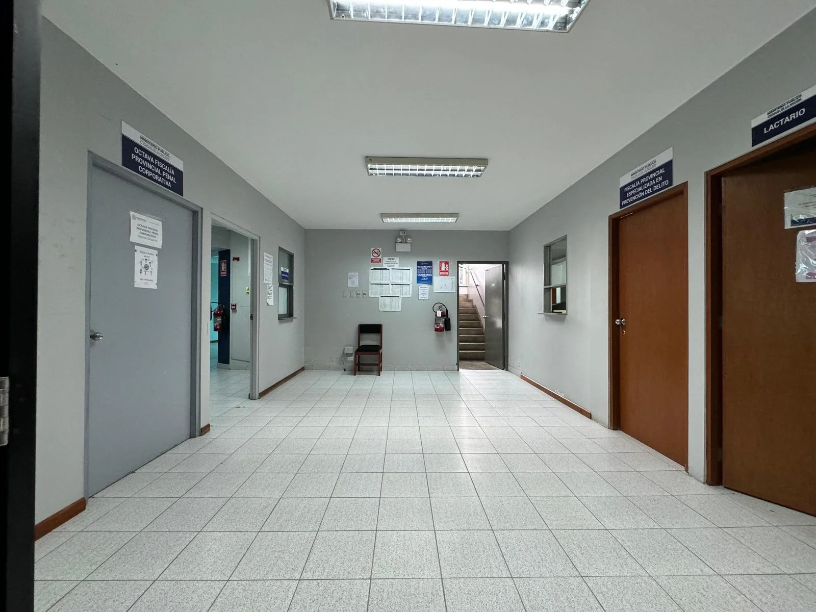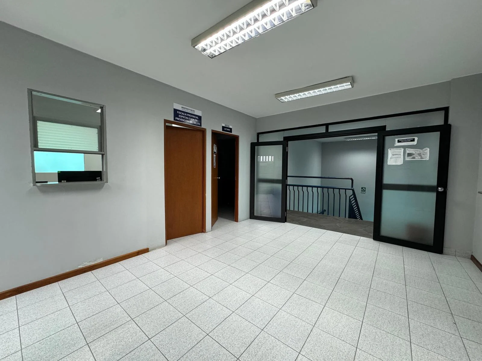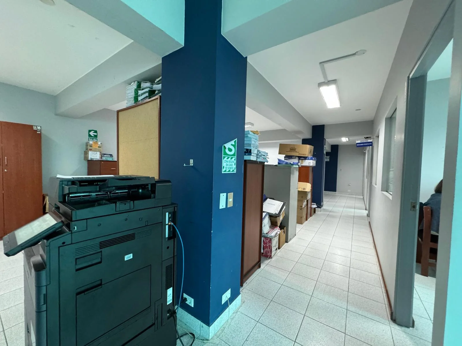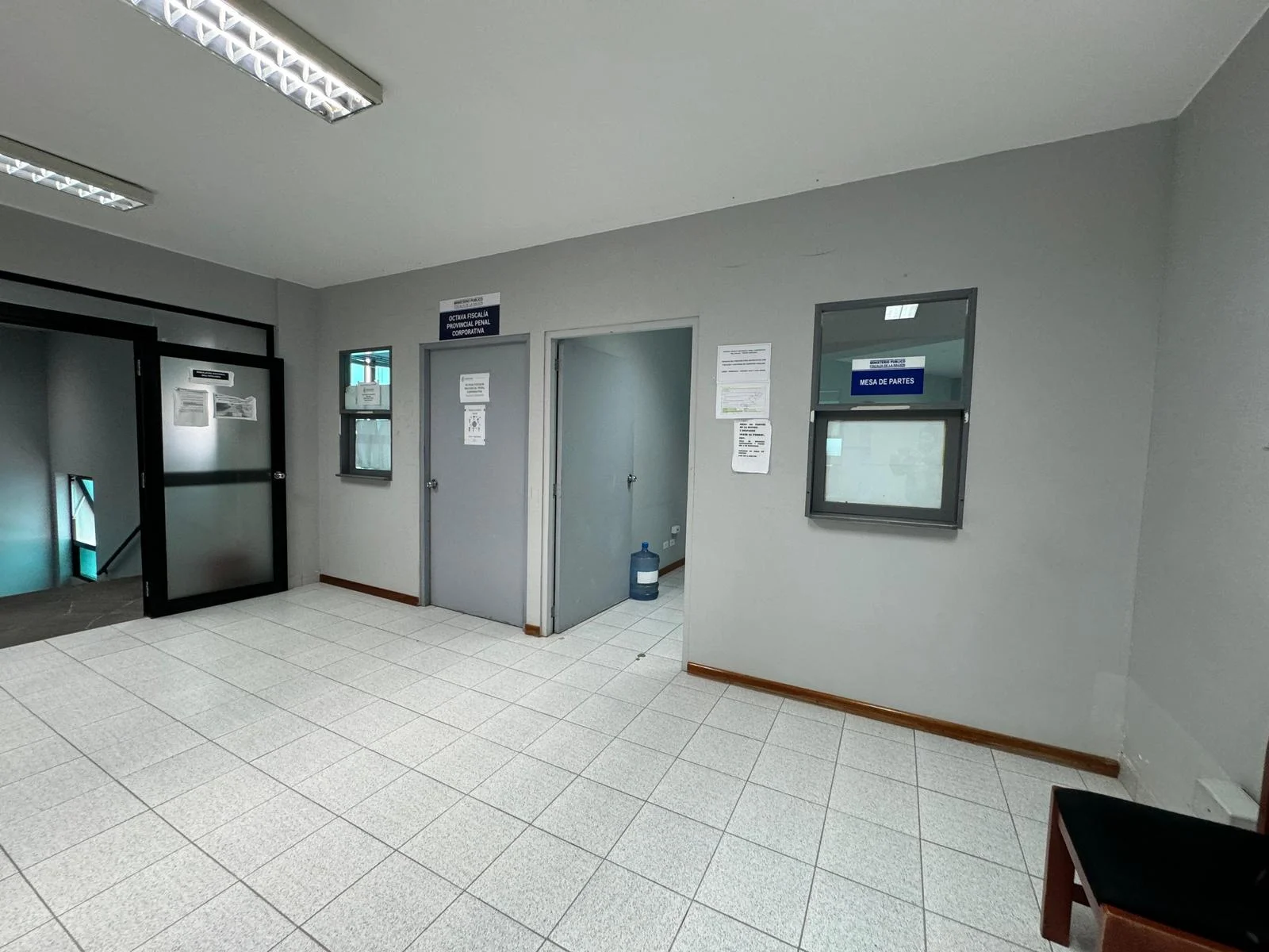 Ambientes con divisiones en drywall para 10 oficinas, 8 baños y escalera al cuarto piso.