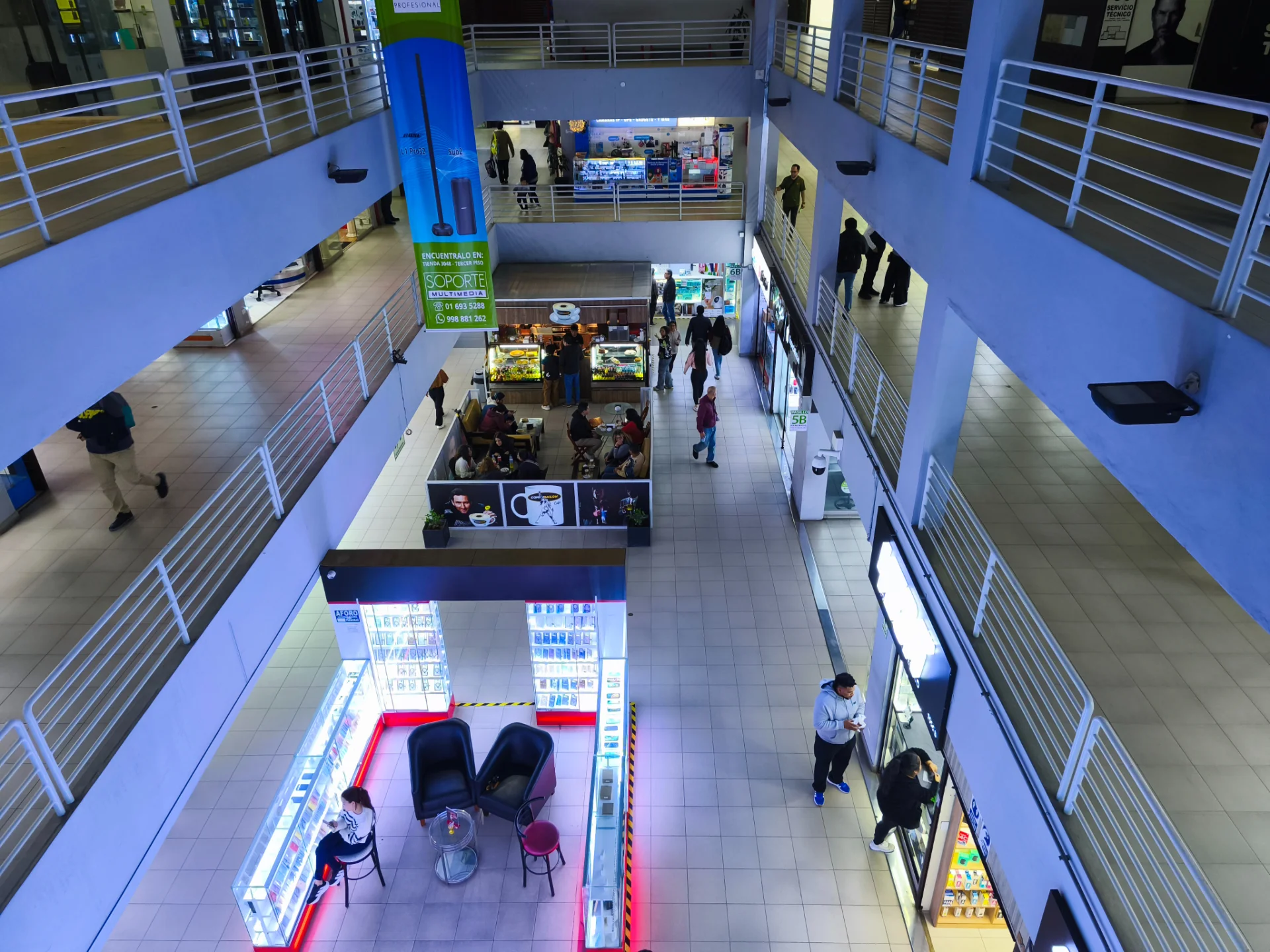 Local amplio, iluminado, remodelado, con techos altos, y bien ubicado dentro del Centro Comercial Compu Palace cerca a la entrada al gimnasio Smart Fit.