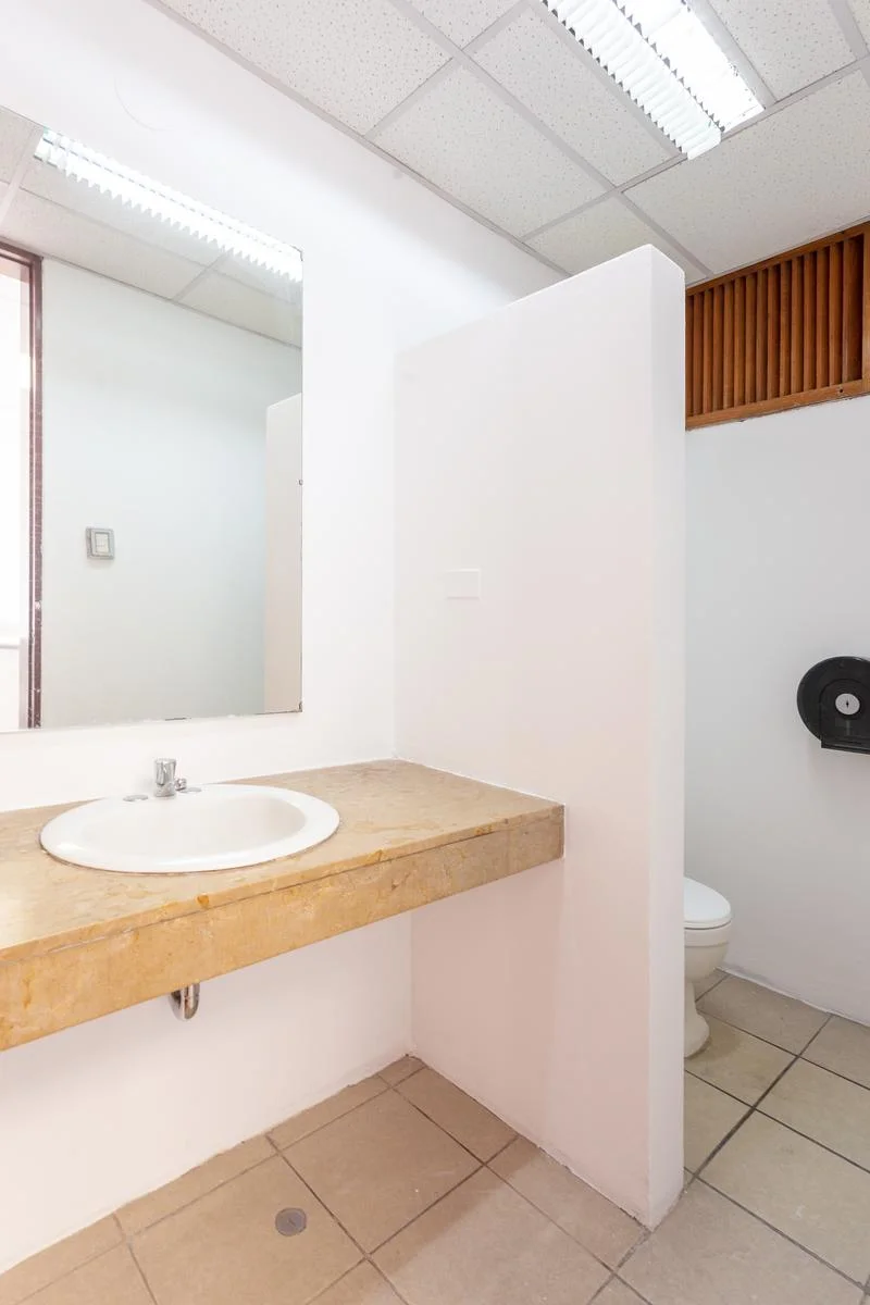 3 baños de uso común: uno para hombres, uno para mujeres y uno adaptado para personas con discapacidad.