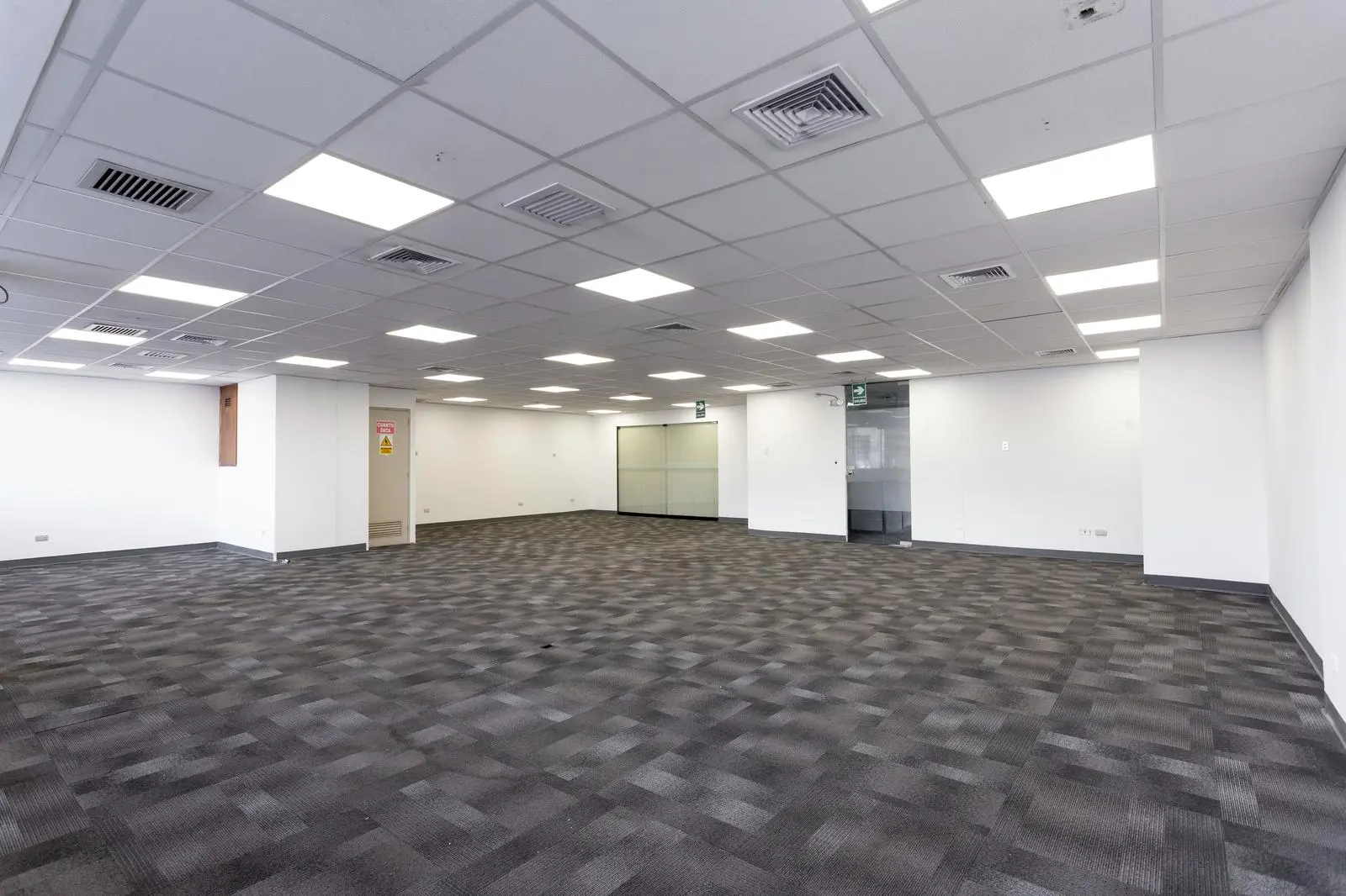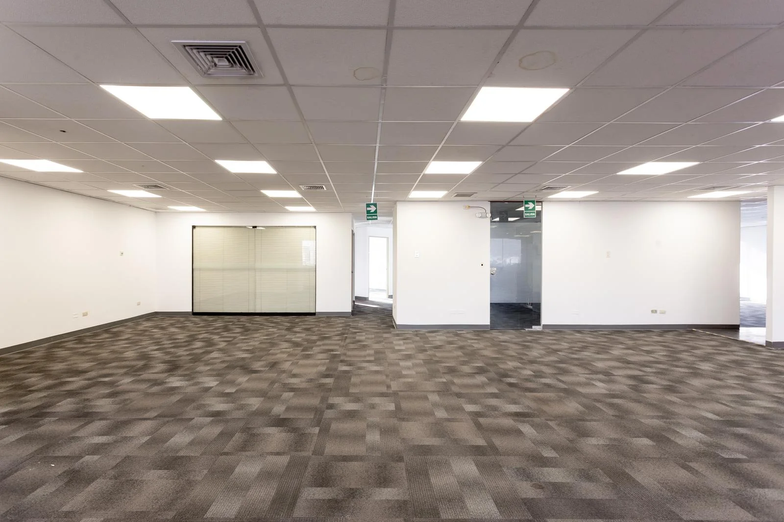 Techo falso cielo con luminarias empotradas, garantizando una iluminación adecuada en todas las áreas.
