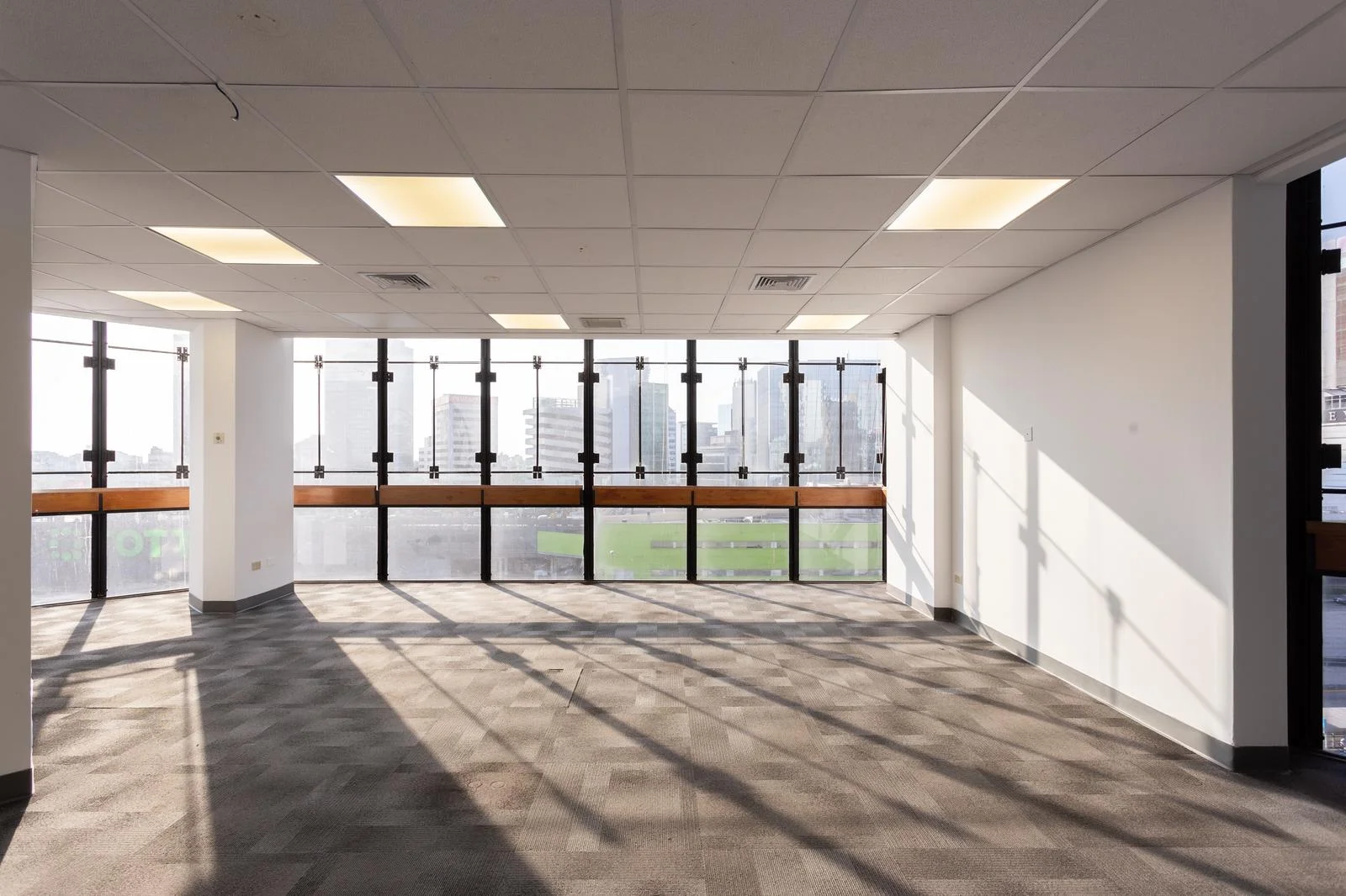 Ventanas de piso a techo con vidrios templados, permitiendo el ingreso de luz natural y ofreciendo una vista privilegiada.
