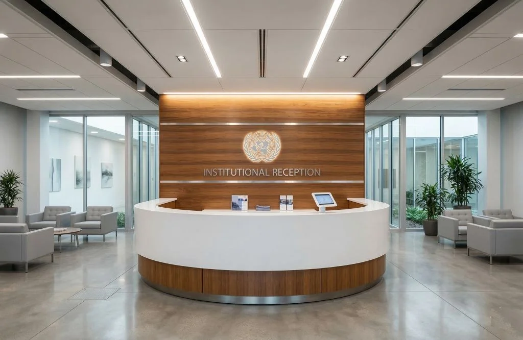 Evalúa esta oficina diseñada para operaciones de alto nivel institucional.