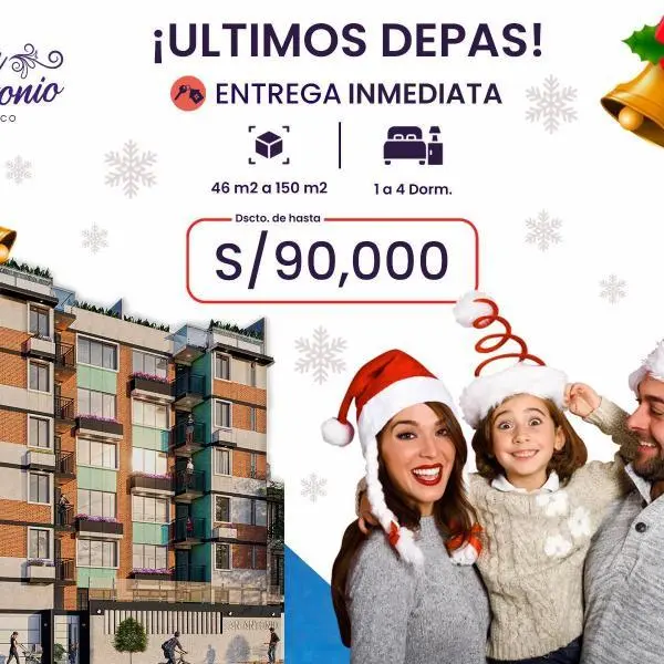 Residencial San Antonio de Surco Santiago de Surco Entrega Inmediata Este novedoso proyecto se encuentra ubicado en una de las mejores zonas residenciales del distrito de Surco adems de estar a muy pocos metros de exclusivos centros comerciales bancos parques restaurantes colegios universidades y concurridas avenidas principales Contamos con departamentos de a dormitorios flat y dplex distribuidos adecuadamente en pisos con espacio suficiente excelentes acabados y espectaculares reas comunes Lobby Ascensores Zona de parrillas Terrazas Estacionamiento para bicicletas y autos Depsitos y Pet shower Espacios que te brindarn el estilo de vida que t y tu familia merecen Vive seguro vive en Surco Nos encontramos ubicados en Calle Los Ficus Urb San Antonio Surco Para mayor informacin consulta en nuestra web o contctate directamente con nosotros al siguiente nmero Ximadijo Inmobiliariat lo visualizas nosotros lo creamos Ms de aos de experiencia haciendo realidad el sueo del departamento propio