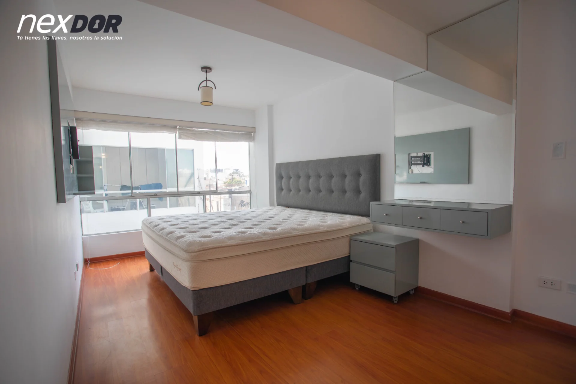 • Dormitorio principal: cuenta con cama King, TV, closet empotrado y baño completo.