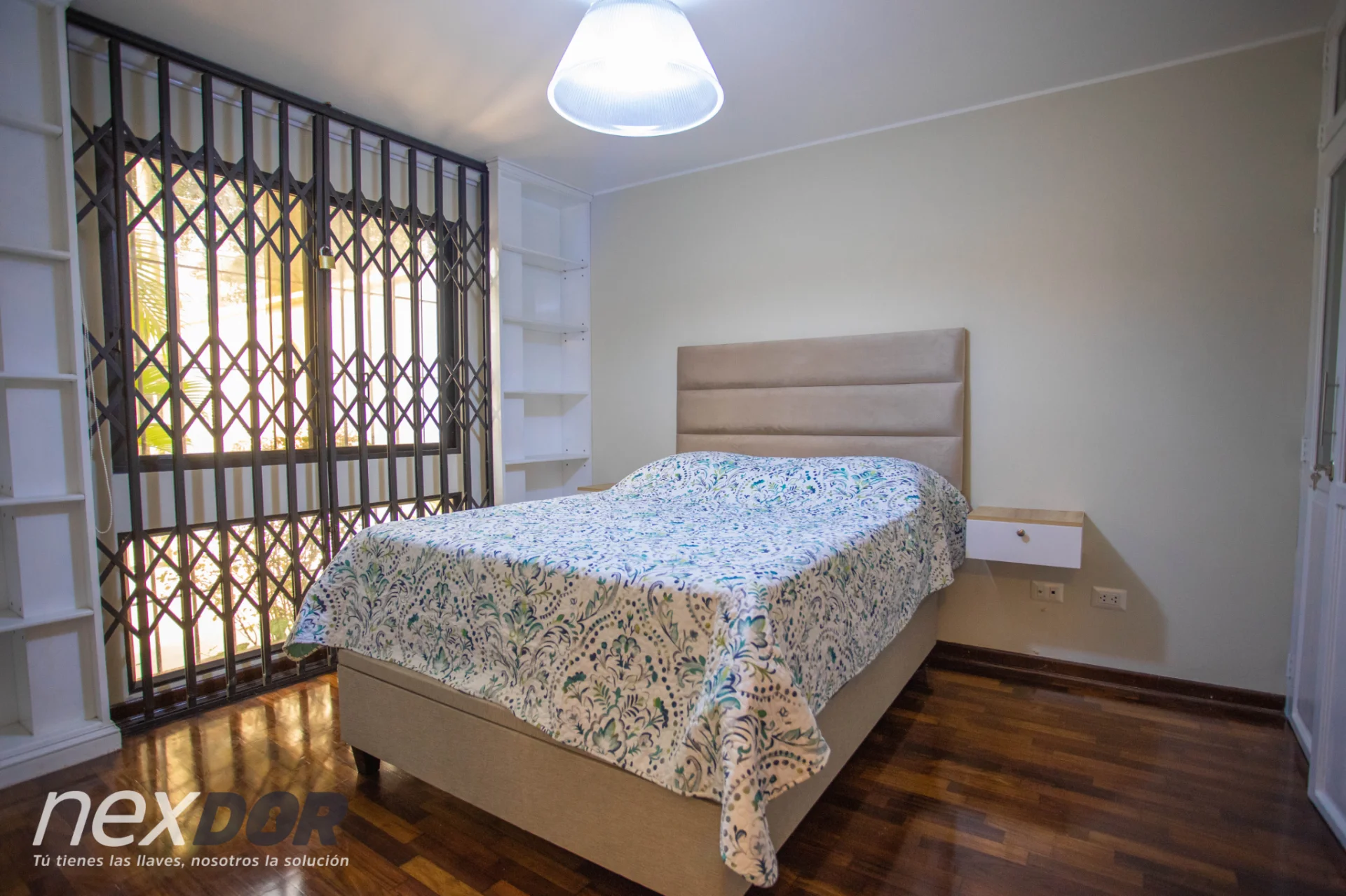 - Habitación principal: Cama Queen TV, closet y cortinas