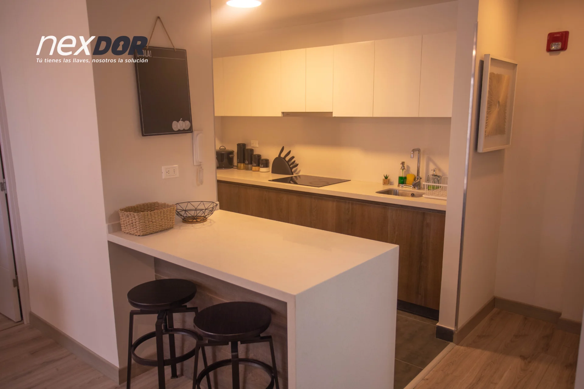 - Cocina moderna concepto abierto integrada con la sala con muebles de diseño y electrodomésticos de última generación