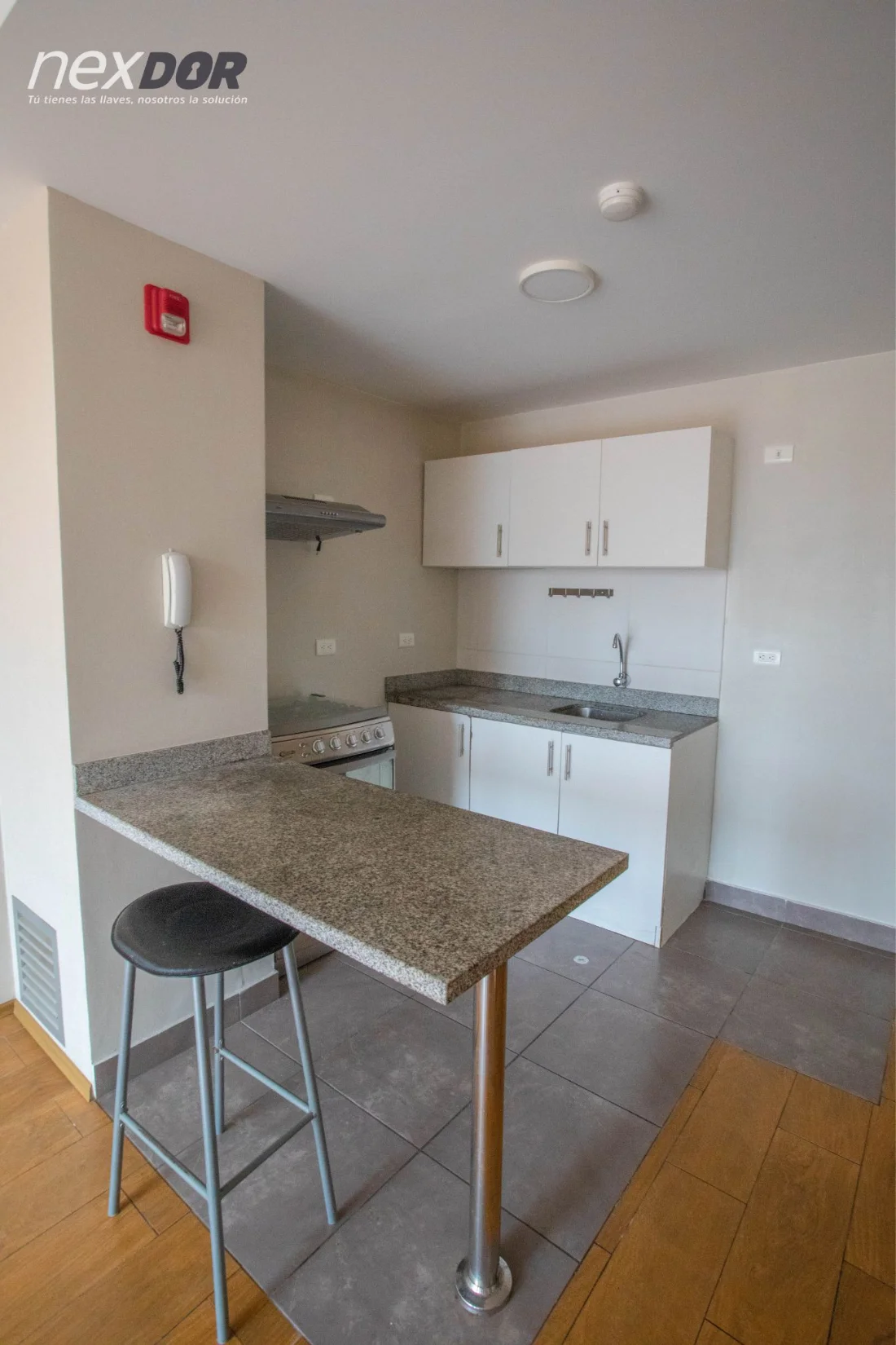- kitchenette con muebles altos y bajos con campana empotrada.