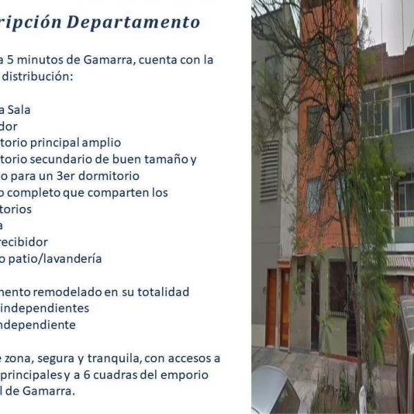 Contamos con hermoso departamento de m en EDIFICIO CHAVEZ TUEROS LA VICTORIA El precio de venta del departamento asciende a US Departamento en er piso de metros cuadrados ubicado a minutos de Gamarra cuenta con la siguiente distribucin Amplia Sala Comedor Dormitorio principal amplio Dormitorio secundario de buen tamao y espacio para un er dormitorio bao completo que comparten los dormitorios Cocina Patio recibidor Amplio patiolavandera Departamento remodelado en su totalidad Servicios independientes Ingreso independiente Excelente zona segura y tranquila con accesos a avenidas principales y a cuadras del emporio comercial de Gamarra SEGUNDA VENTA PAPELES EN REGLA ALCABALA DISPONIBILIDAD INMEDIATA Telfonos de contacto MOVISTAR ENTEL CORREOS gerente