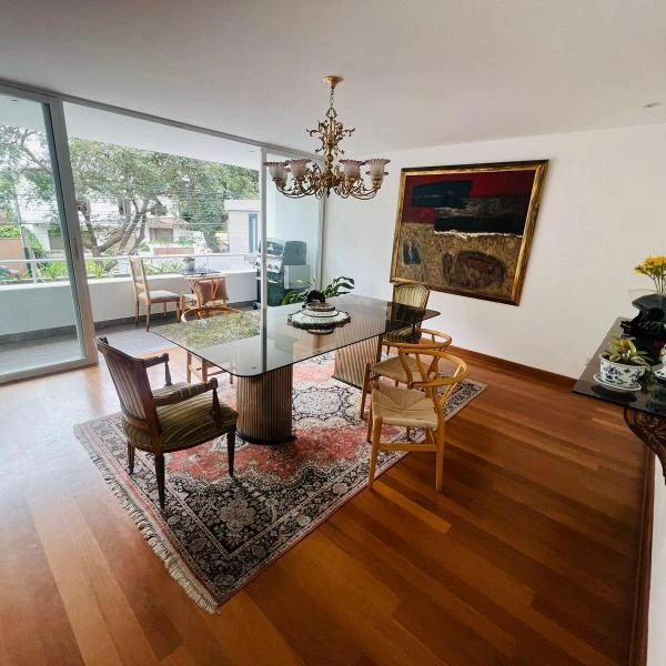 Se vende exclusivo departamento en San isidro a cdra del club El golf Ubicado en Av Coronel Portillo Cuadra Edificio de pisos con seguridad Tranquilo modernos y seguro Ascensor directo Vista externa Cuenta con estacionamientos de visita Ambientes Recibidor Bao de visita Sala principal con mucha luz Comedor frente a la terrazabalcn con mucha luz TerrazaBalcn Sala de estar y TV Dormitorio Principal con walkin closet y amplio bao incorporado Dormitorio con bao incorporado y vestidor Dormitorio con bao incorporado y vestidor Cocina Amplia enchapada en granito Lavandera Dormitorio de servicio y bao incorporado de servicio Estacionamientos paralelos Depsito ubicado en el er piso del edificio Mantenimiento S incluye servicio de agua DOCUMENTOS EN REGLA