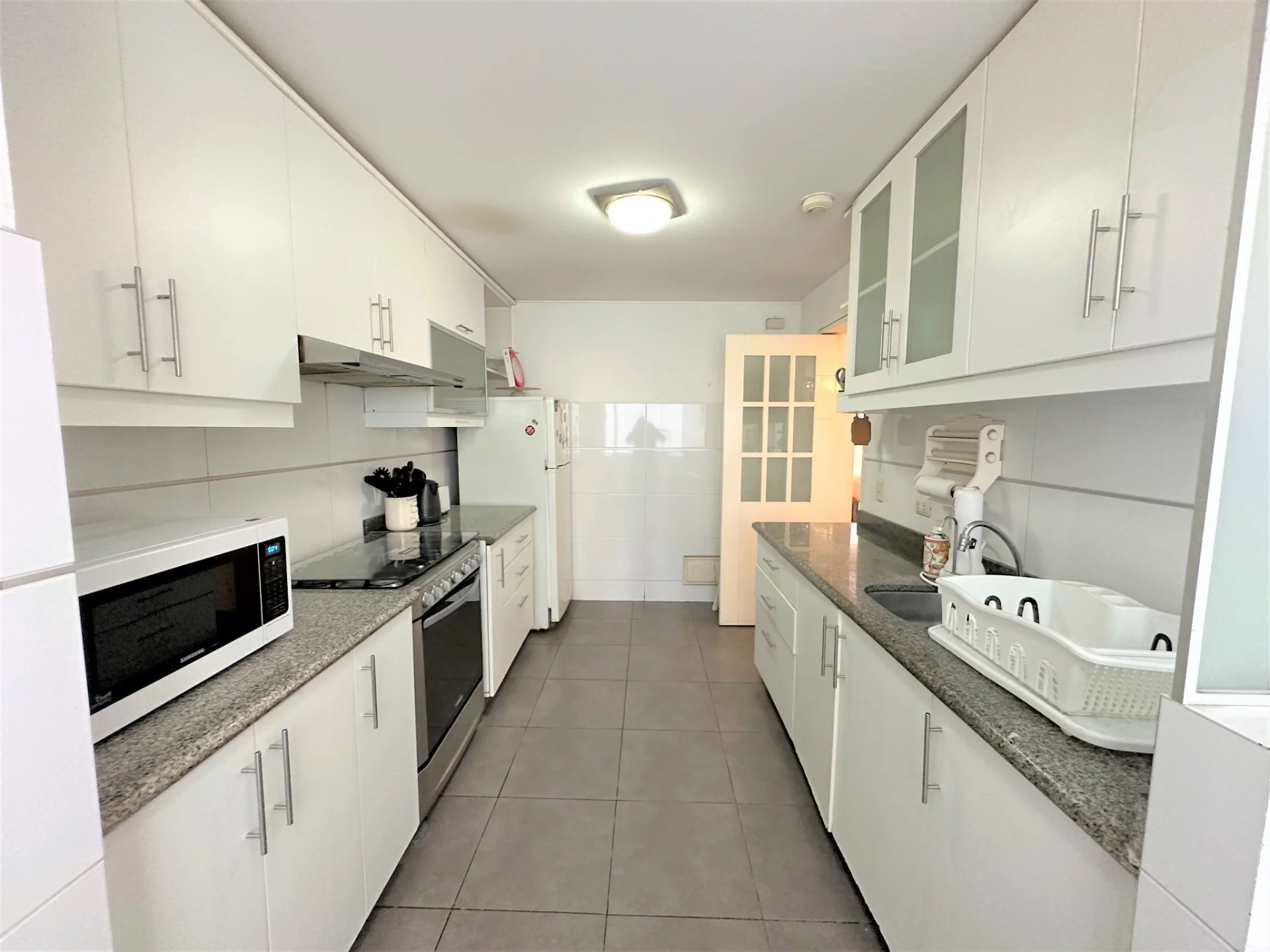 - Ambientes: Balcon, sala comedor con pisos de madera, cocina amplia con desayunador y muebles altos y bajos, lavandería separada.