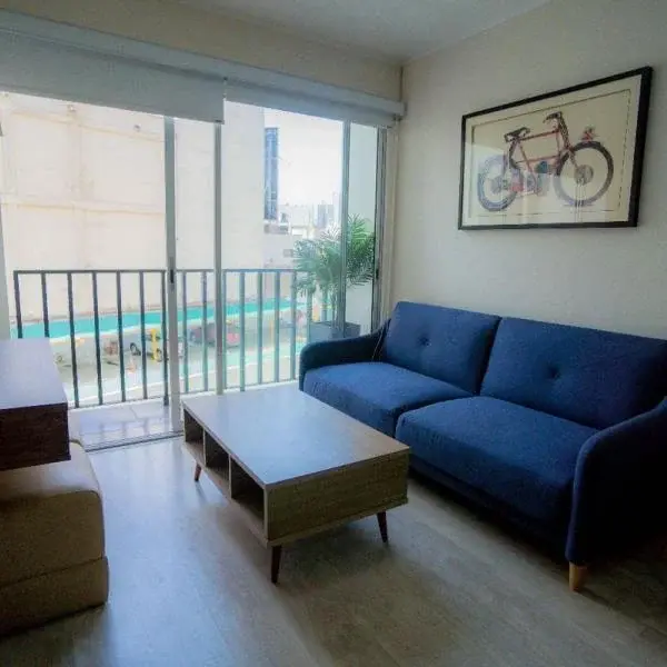 VENDO MODERNO DEPARTAMENTO DE M SAN ISIDRO Ubicado en no piso con ascensor distribuido de la siguiente manera Sala comedor cocina tipo kitchenette con reposteros altos y bajos implementada con cocina de vitrocermica campana extractora y horno microondas pequeo balcn con vista interna rea de lavandera y termaHabitacin principal con closet bao completo compartido con la visitaEL PRECIO NO INCLUYE COCHERAEl edificio cuenta con hermosas reas comunes lobby game zone sala bar piscina y terraza grill lounge black deck rea de yoga gimnasio lavandera y zona de bicicletas Cuenta con guardiana hrsEXCELENTE UBICACIN Vive y trabaja cerca a pasos del Centro Financiero de San Isidro Accesibilidad con salida directa a las avenidas Javier Prado Arequipa y Petit Thouars A solo cuadras de centros recreacionales como C C Camino Real y Parque El OlivarSAITO SERVICIOS INMOBILIARIOS SACRUC
