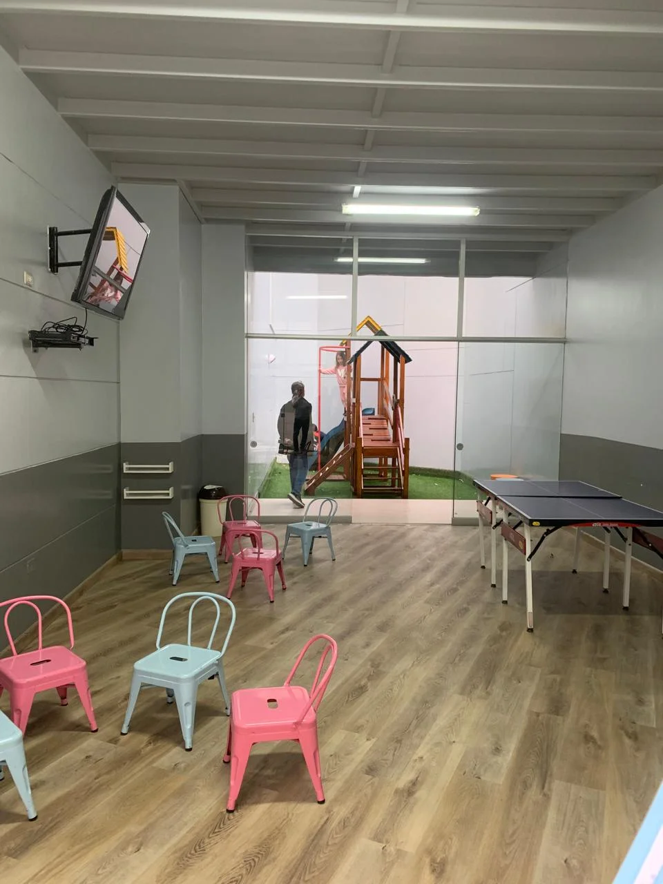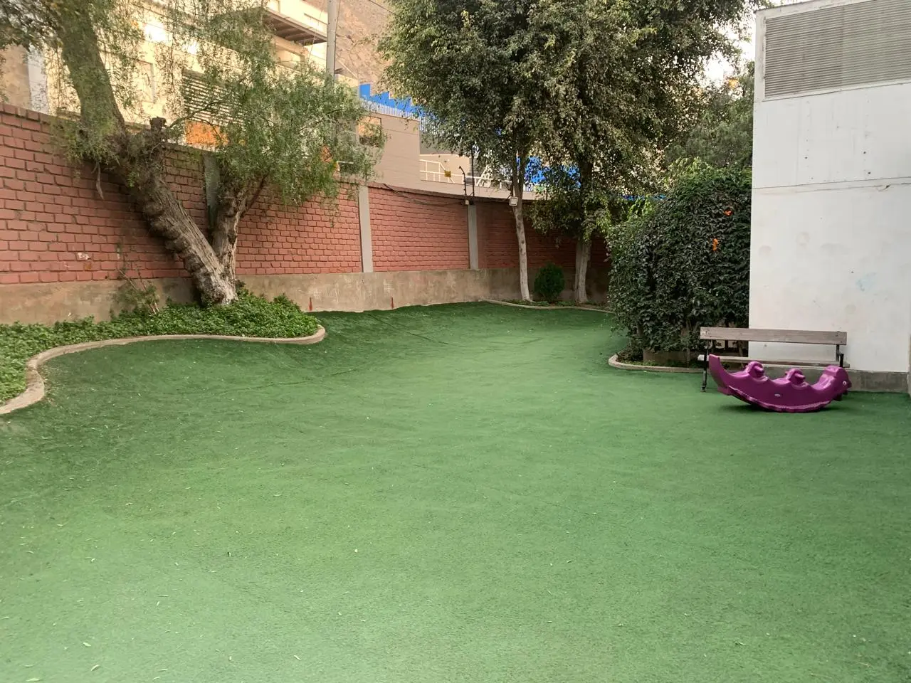 PISCINA Y SALON DE JUEGOS, JARDIN SINTETICO PARA NIÑOS.