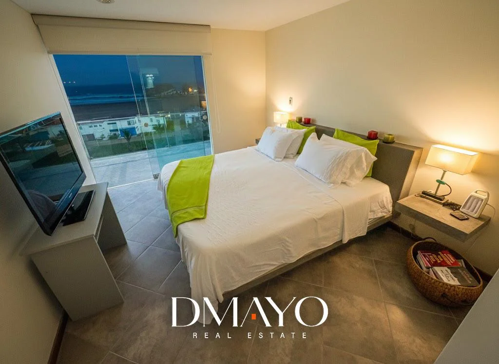 Dormitorio Principal (Master Suite): Habitación espaciosa con capacidad para cama King. Incluye un walking closet, baño privado completo y acceso a una terraza privada con vista directa al mar.