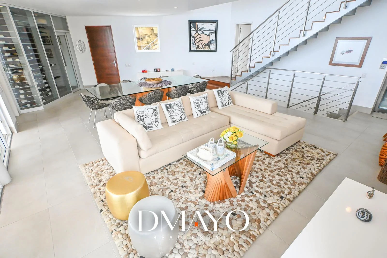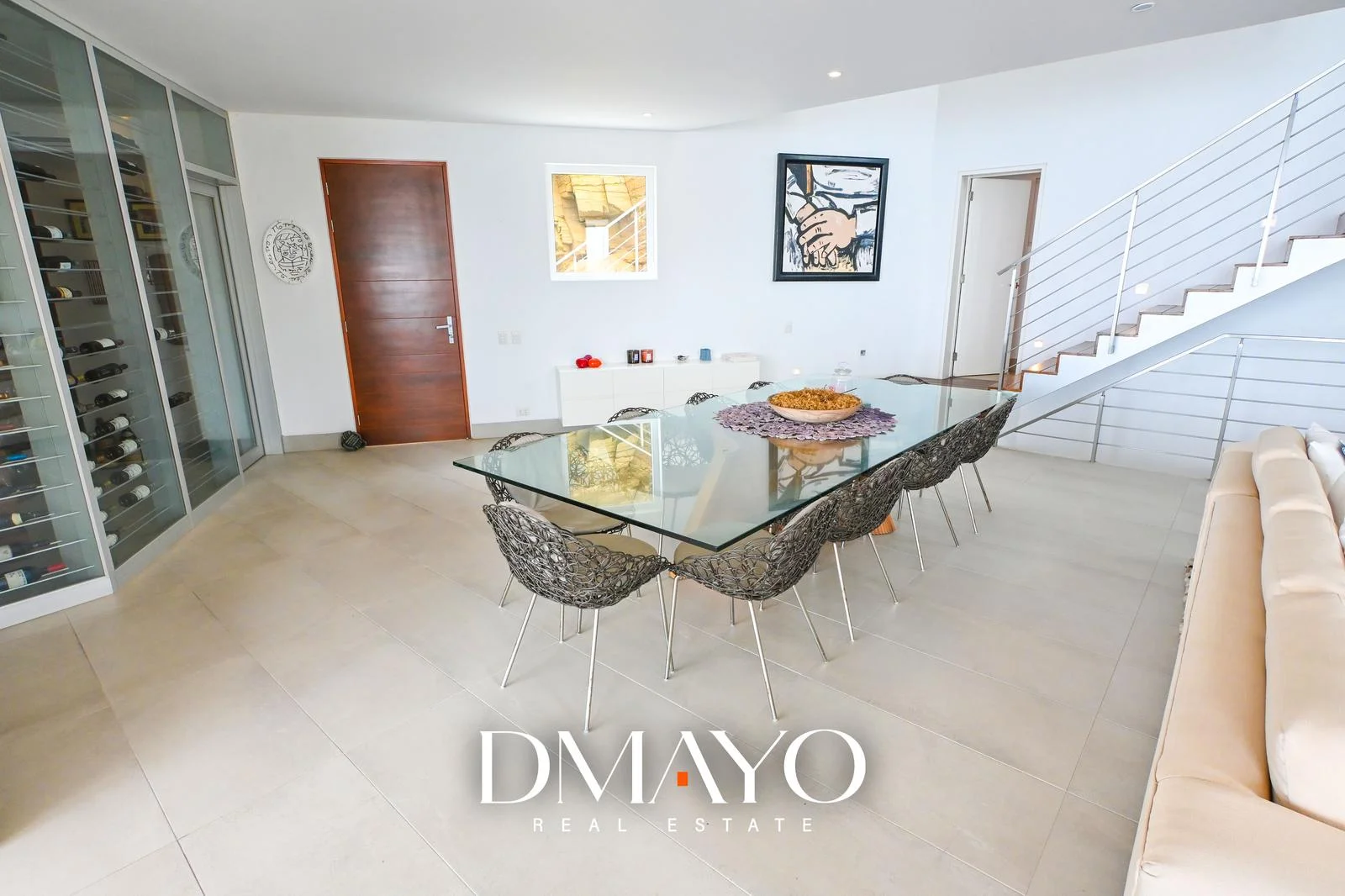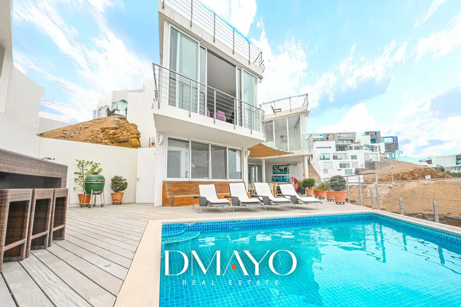 “Una casa de tres niveles, con seis suites, ascensor, cava de vinos, sala de juegos, piscina infinita… y una vista que parece no terminar nunca.”
