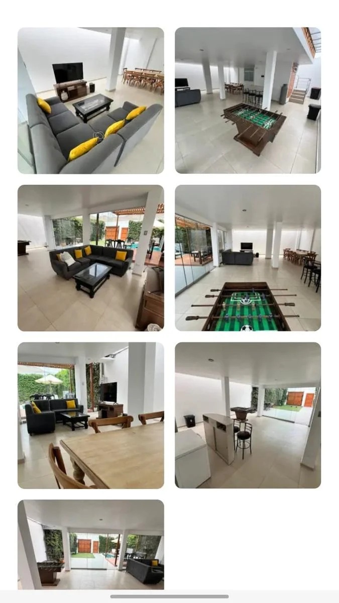 En el segundo piso encontraras 3 habitaciones (5camarotes y una cama de 2 plazas). Tenemos un baño completo en cada piso y medio baño en el primer piso. En el primer piso, una amplia sala amoblada, Smart Tv, congeladora y barra de bebidas. En las noches arma una cálida fogata junto a los que mas quieres o disfruta una noche de películas. Además una cocina de estreno.