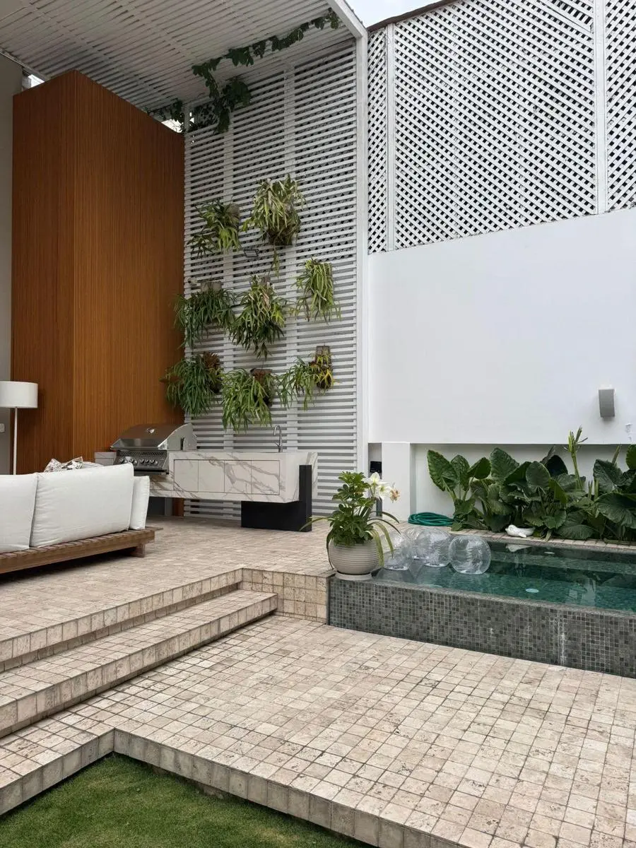 Cuenta con una excelente distribución: dormitorio principal con doble walk-in closet, cuatro dormitorios tipo suite con baño incorporado, gimnasio privado, amplia cocina con finos acabados y modernos equipamientos. La propiedad dispone de ascensor para personas con discapacidad, aire acondicionado en todos los ambientes y una elegante zona de parrilla con comedor en terraza.