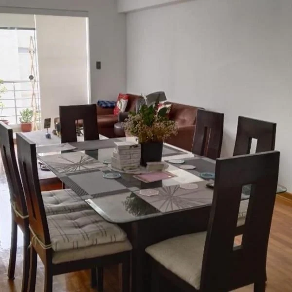 ALQUILER de DEPARTAMENTO AMOBLADO en MIRAFLORES Av Pardo Piso rea m Habitaciones Precio venta USD Mantenimiento S Descripcin Departamento ubicado en el centro de Miraflores a minutos del parque Kennedy excelente ubicacin muy tranquila Caractersticas Habitacin principal con closet y bao incorporado cuenta con cama king Habitaciones secundarias con closet y camas de plazas Baos completos bao de visita Sala y Comedor bastante iluminada con balcn y mampara equipada con sofs mesa de comedor Cocina cerrada con tablero de granito muebles altos y bajos completamente equipada electrodomsticos menaje rea de lavandera con lavadero therma lavadora y secadora Recepcin y vigilancia las horas reas comunes Terraza saln sum piscina Salidas rpidas Av Jos Pardo Av De la Aviacin Av Comandante Espinar Av Santa Cruz Circuito de playas