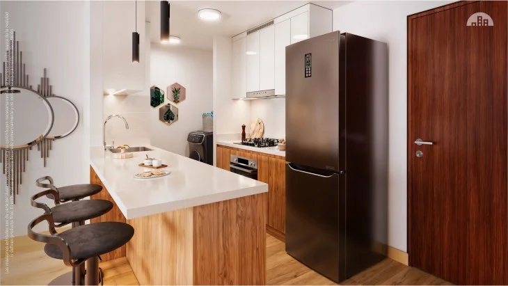 Cocina con muebles altos y bajos.
