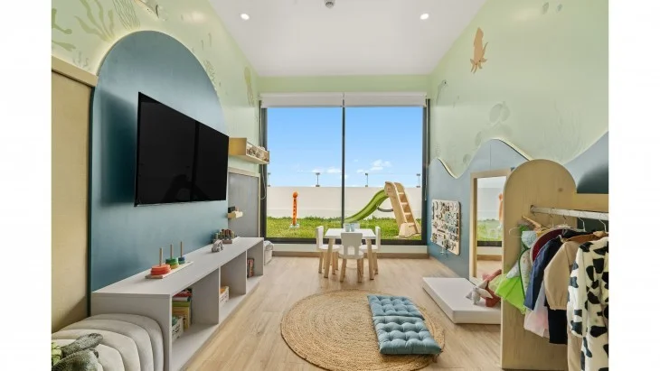 Área, jardín y sala de juegos para niños.