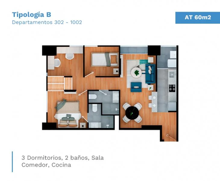 3 dormitorios.