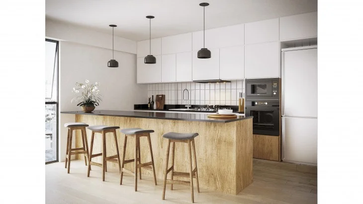 Cocina con muebles altos y bajos.