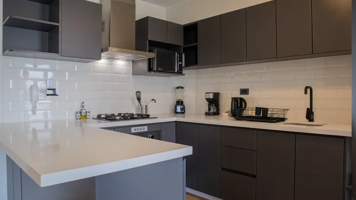Cocina con muebles altos y bajos.