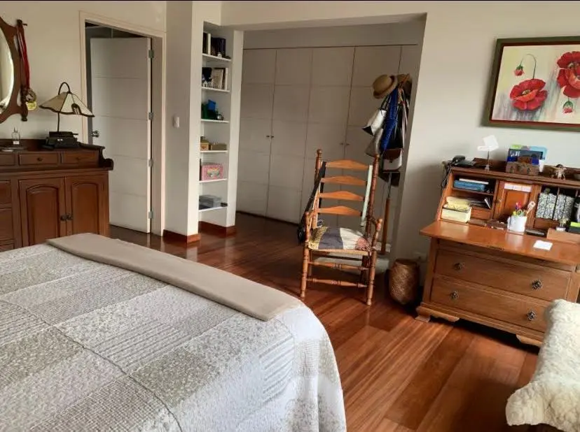 Dormitorio principal: muy espacioso (cama king), walk-in closet + closets, baño incorporado y vista al parque.