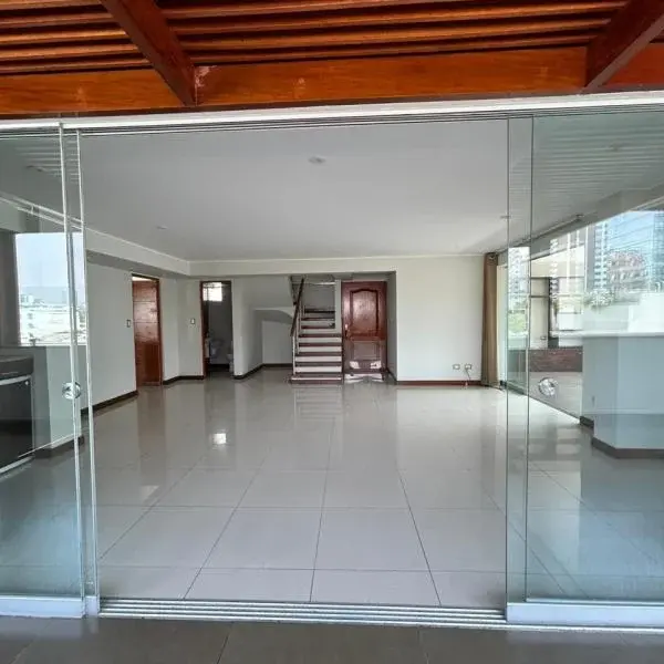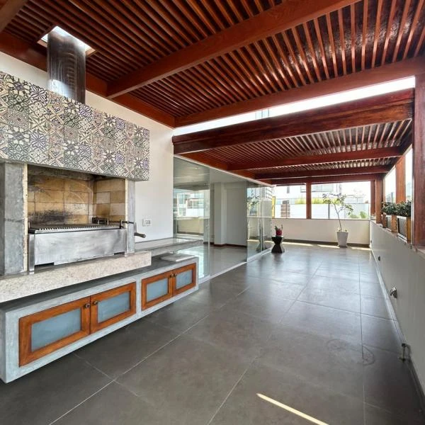 VENTA DE EXCLUSIVO Y AMPLIO DEPARTAMENTO DPLEX PENTHOUSE DE M SAN ISIDRO REA TOTAL M NIVEL PISO rea ocupada m rea Techada m NIVEL rea Ocupada m rea Techada m CARACTERSTICAS GENERALES El Departamento duplex penthouse cuenta con acabados de lujo Asimismo goza de una excelente iluminacin natural en cada uno de sus ambientes Ubicado en y piso Toda el rea social se encuentra en el primer nivel piso y los dormitorios o rea privada en el segundo nivel piso Aos de antigedad aos exactamente Todas las ventanas y mamparas del departamento cuentan con un sistema de aislamiento de sonido y polvo por completo soundproof Edificio de pisos departamentos por piso cuenta con ascensores recepcin con personal de vigilancia y videovigilancia las horas del da y cmoda sala de recepcinespera UBICACIN Y REFERENCIA DEL DEPARTAMENTO Edificio ubicado en Calle Libertadores a cuadras del Lima Golf Club Cerca de la interseccin de Av Pardo y Aliaga con Av Conquistadores Rodeados de restaurantes y centros comerciales DISTRIBUCIN DEL DEPARTAMENTO NIVEL piso Amplia e iluminada salacomedor con vista hacia la terraza Estudio o dormitorio adicional Terraza con parrilla Cocina con muebles altos y bajos super amplios con excelentes acabados Incluye la lnea blanca tales como la refrigeradora la cocina horno elctrico y campana extractora Lavandera amplia y ventilada Cuarto y bao de servicio Bao de visita NIVEL piso dormitorios en total ms baos completos Dormitorio principal amplio con su propio closet adicional amplio y empotrado ms bao completo dormitorios secundarios con closet Bao completo compartido Sala de estar closets para ropa blanca Monto de mantenimiento S soles Incluye vigilancia horas limpieza y alumbrado de reas comunes mantenimiento de ascensor cmaras de seguridad y consumo de agua del departamento PRECIO DE VENTA DEL DEPARTAMENTO US dlares Incluye estacionamientos paralelos CONTACTO HELLEN SALAZAR CABRERA