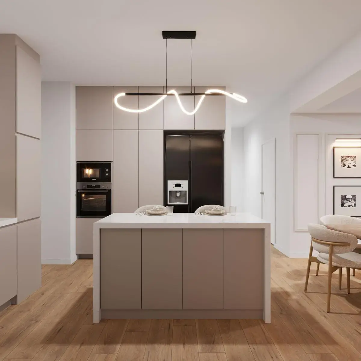 La altura de los techos, de 2.7 metros, genera una atmósfera amplia, fresca y confortable. Los detalles como las barras de cuarzo italiano en baños y lavandería elevan la estética y funcionalidad del hogar. La cocina, totalmente equipada con electrodomésticos de la reconocida marca FDV, incluye un horno a gas, ideal para quienes buscan practicidad y sofisticación en su día a día.