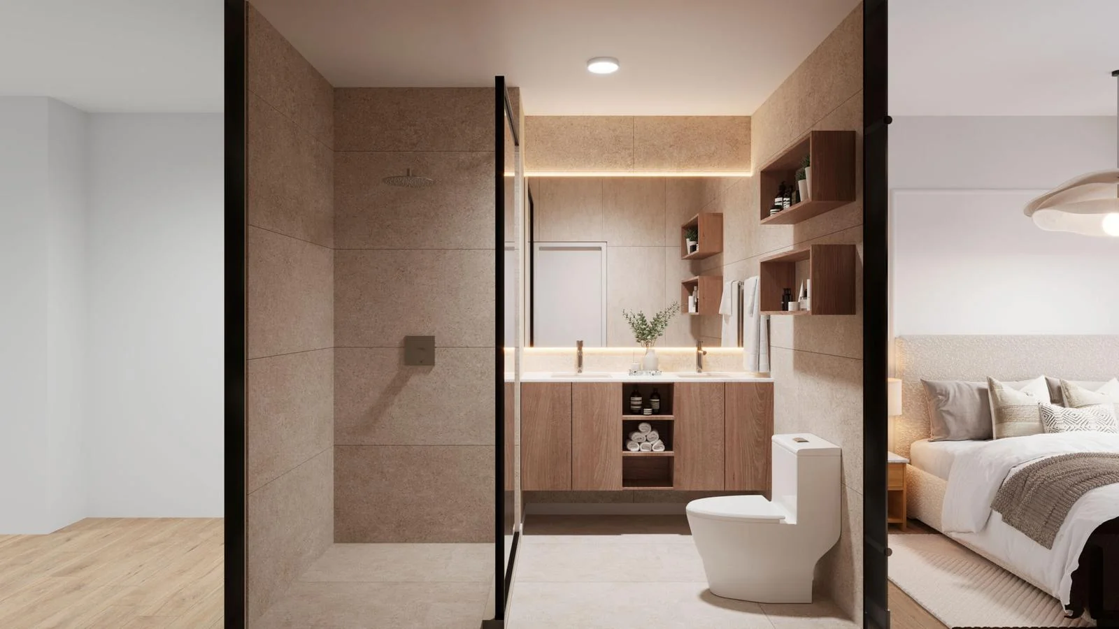 Cada espacio ha sido cuidadosamente diseñado con acabados de alta calidad. Los pisos cuentan con revestimiento SPC italiano de 7 mm, que combina durabilidad y diseño contemporáneo. En los baños y la cocina, el porcelanato complementa la estética moderna, mientras que las paredes, empastadas y pintadas con esmero, garantizan una presentación impecable en cada ambiente.