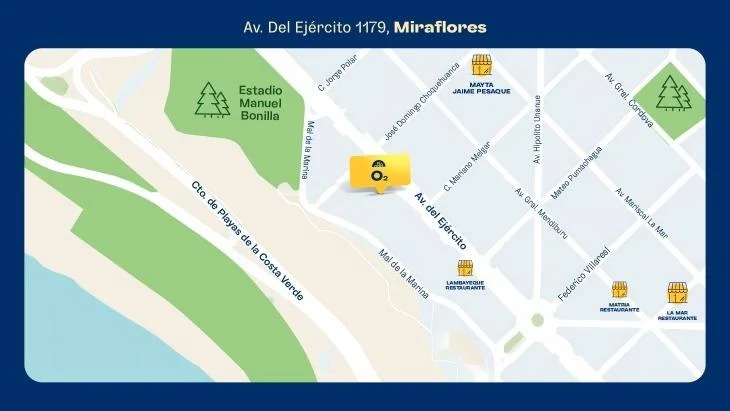 Moderno edificio ubicado a un paso del parque al Malecón donde la vida se mezcla perfectamente, rodeado de parques, restaurantes, cafés, y toda la personalidad que solo Miraflores puede ofrecer.