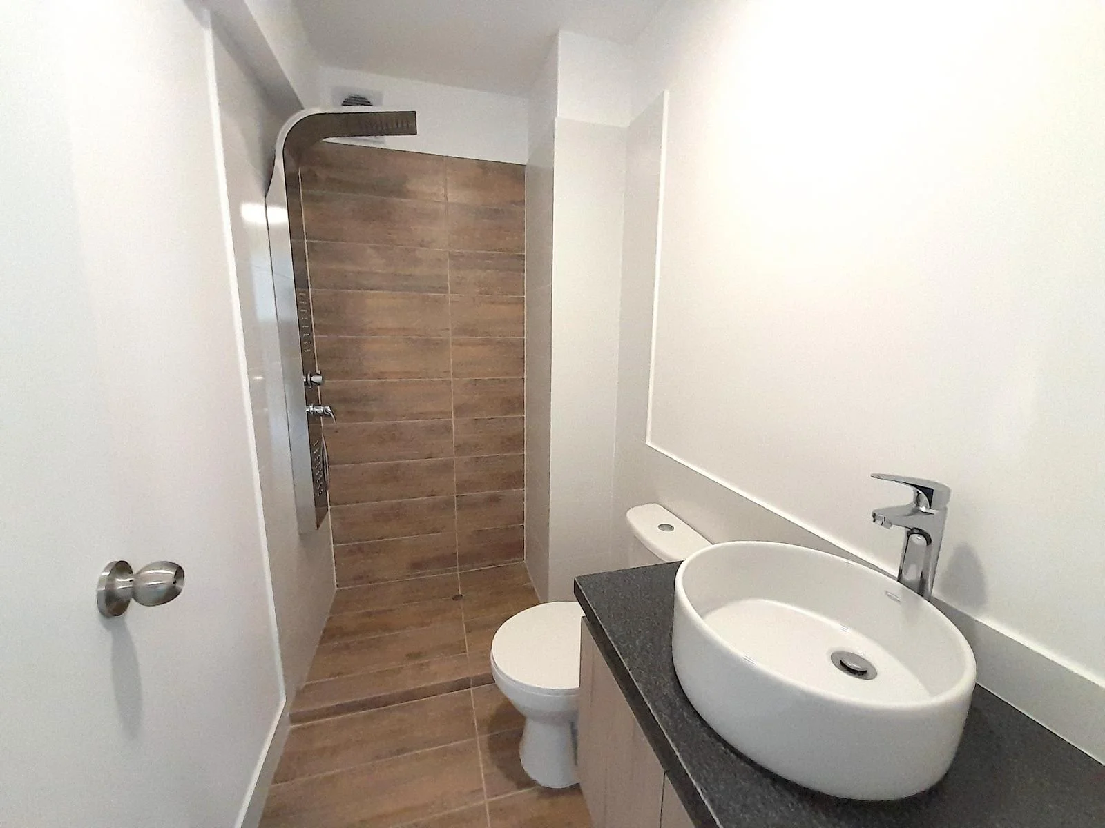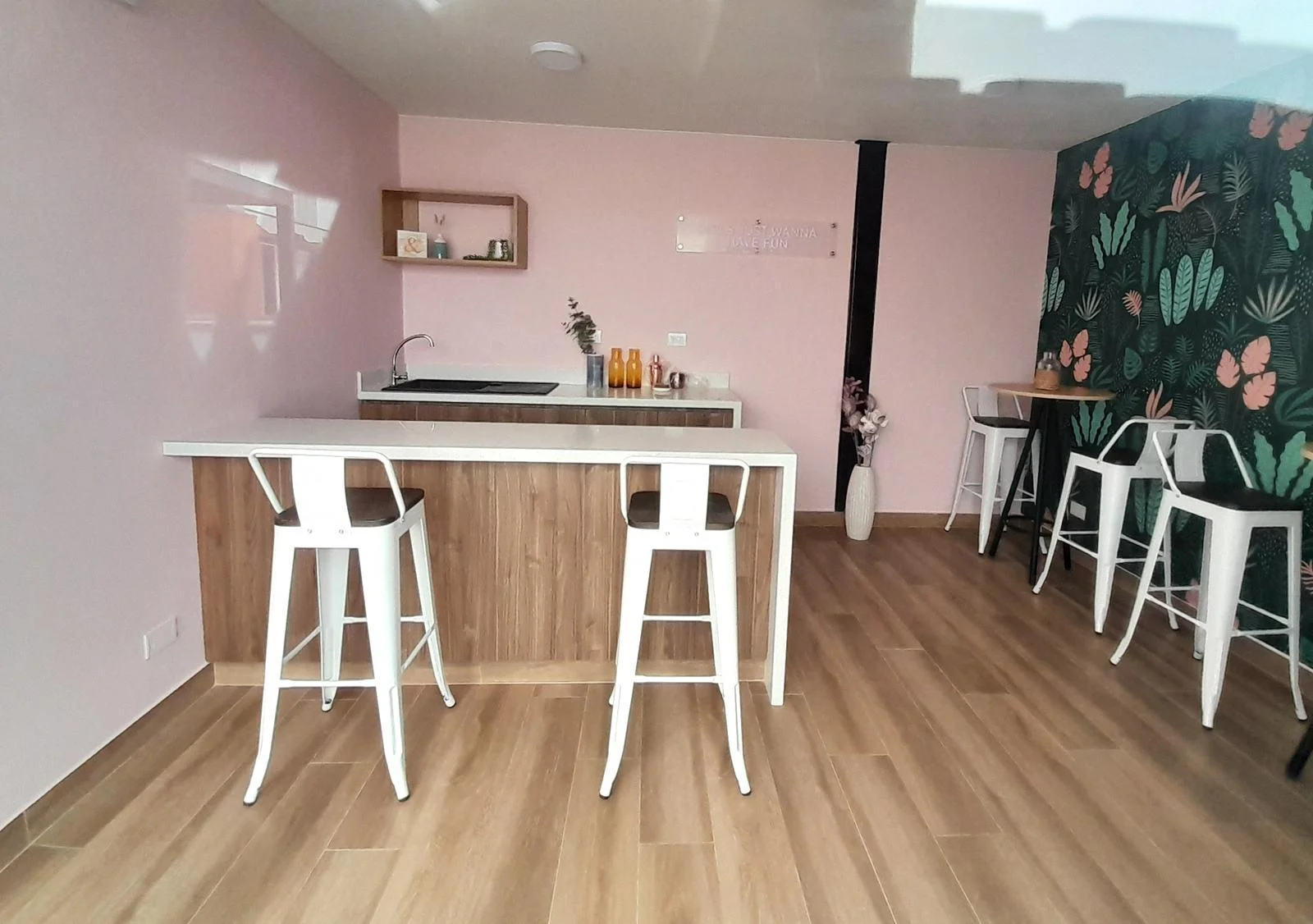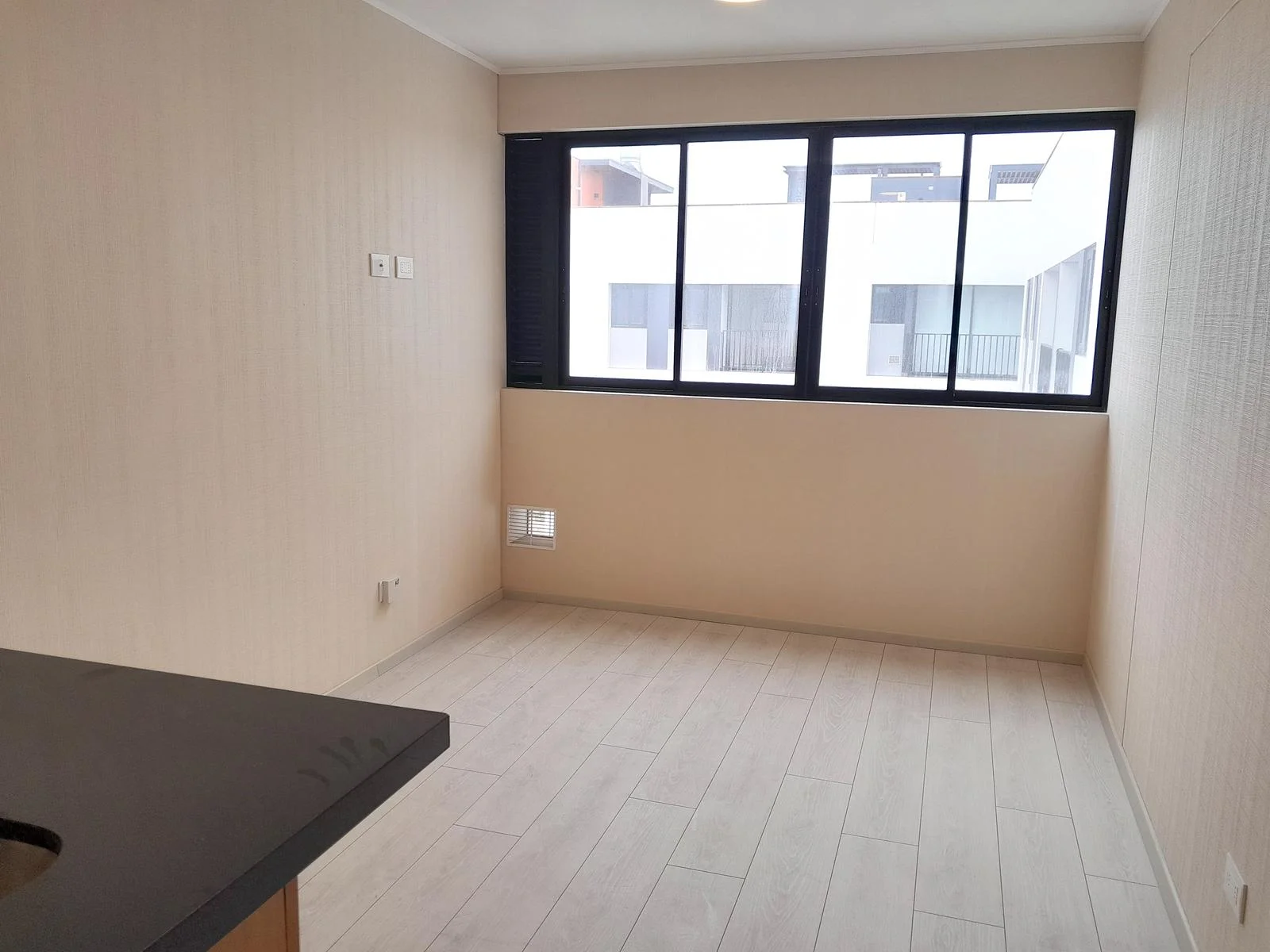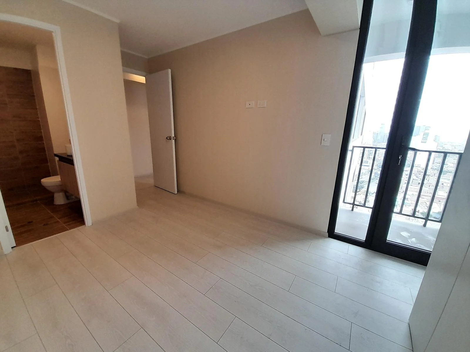 Este moderno departamento ofrece una vista panorámica hacia San Isidro y está completamente conectado a gas natural. La cocina tipo kitchenette está equipada con muebles de melamina, tanto altos con acabado blanco mate como bajos con acabado tipo madera, y cuenta con electrodomésticos Bosch de alta calidad, incluyendo horno, encimera y campana extractora. Además, dispone de una terma a gas marca Rheem de 8 litros.