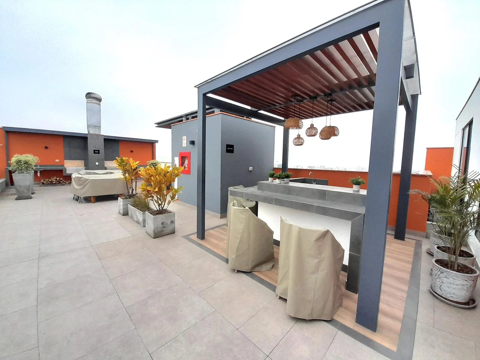 Areas comunes: Lobby, Terraza BBQ, Sushi Bar, Terraza de Pizzas, Terraza de Jugos, Salón Netflix, Sala de Vinos y Quesos, Gamers Room, Karaoke, Recording Room, Sala de Reuniones, Sala Brainstorming, Patio de Juegos, Salas para Niños (Disney Room, Lego Room), Lavandería, Zona de Bicicletas, Zona de Mascotas, Gimnasio.