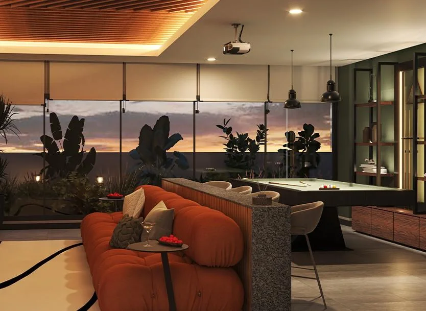 Los residentes podrán disfrutar de modernos espacios comunes que incluyen un lobby elegante, meeting room, lavandería, Sky Bar con vista panorámica, BBQ, Picnic Zone, Digital Room, Kamado Zone, Grill Bar y Bike Zone, ideales para el entretenimiento y la relajación.