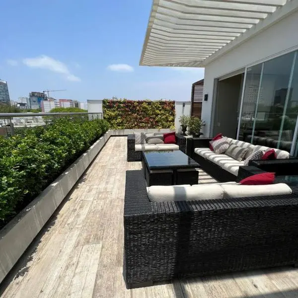 VENTA DE DEPARTAMENTO DUPLEX DE LUJO EN LA MEJOR ZONA DE SAN ISIDRO Zona residencial muy tranquila y bien ubicada Con acceso a avenidas importantes como la Av Pezet y Av Coronel Portillo A solo cuadras del golf y cuadras de Salaverry Dormitorio principal con bao privado y walkin closet dormitorios secundarios con closet y bao privado cada uno Amplia SalaComedor Bao de visitas estacionamientos Terraza de m con diseo exclusivo de jardineras con iluminacin y zona de bar con parrilla a gascarbn Cocina espaola equipada lavavajillas horno y opcional refrigerador GE side by side y microondas Dormitorio y bao de servicio rea de lavandera estacionamientos y depsitos amplios Ascensor directo al departamento Todas las ventanas tienen antiruido Porteria y vigilancia