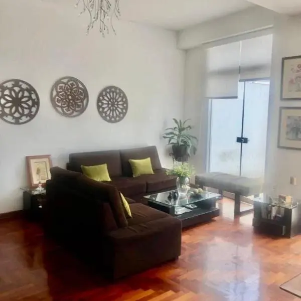 VENTA DE DEPARTAMENTO ideal para airbnb en Miraflores cerca a avenida Larco Malecn de la reserva y Barranco Venta de bonito departamento en primer piso elevado con amplio patio rea de m rea techada m Sala comedor de buen tamao cocina abierta integrada dormitorio bao Amplios closets estacionamiento Patio con jardineras reas comunes salones y patio de reuniones Servicio de lavandera El edificio cuenta con seguridad x Cmaras en ambientes CONTACTAR ROSARIO DUNCAN