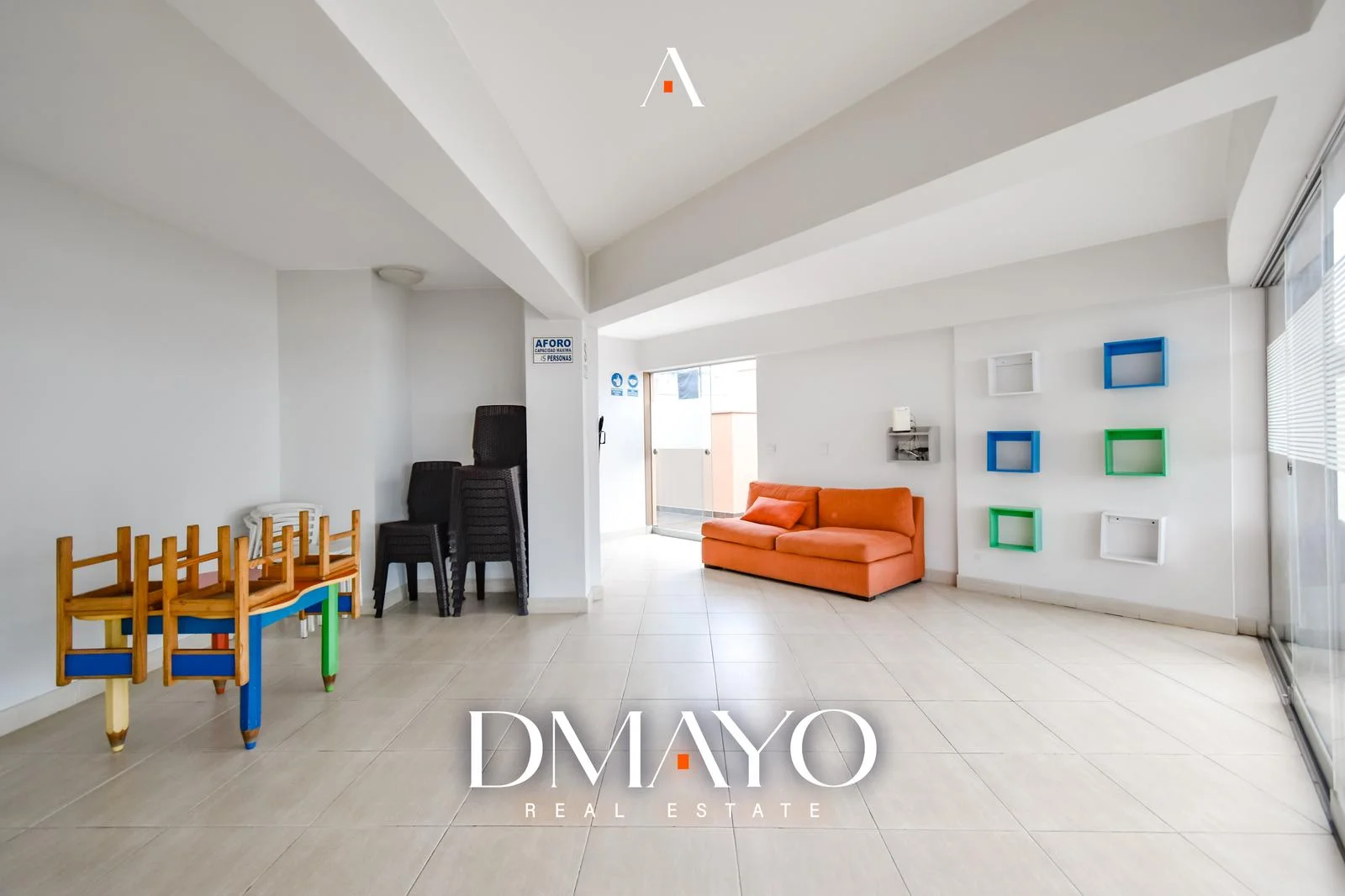 • La sala-comedor es amplia, luminosa y tiene vista directa al jardín principal del condominio.