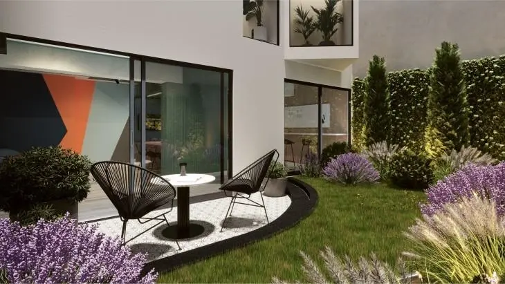 Áreas comunes:1er piso: Lobby, gym, coworking, terraza de estudio, jardín interior.Azotea: BBQ y Roof Garden.