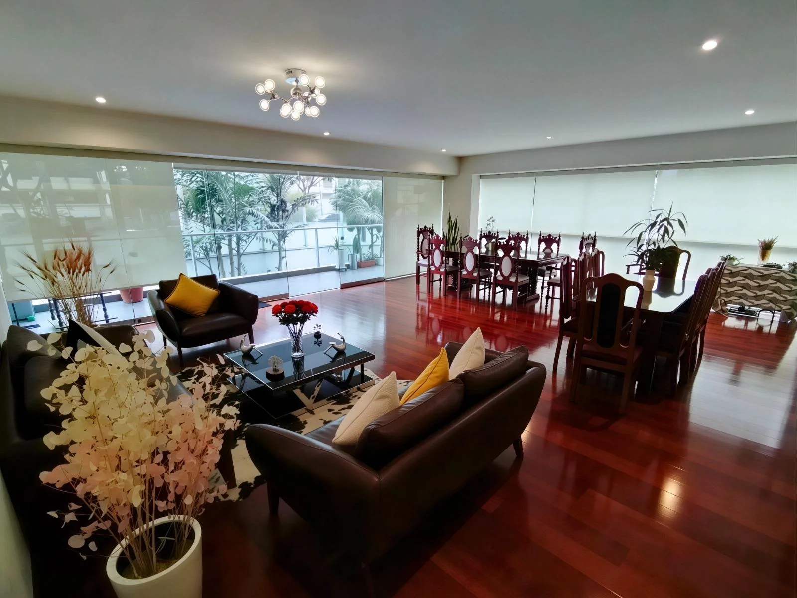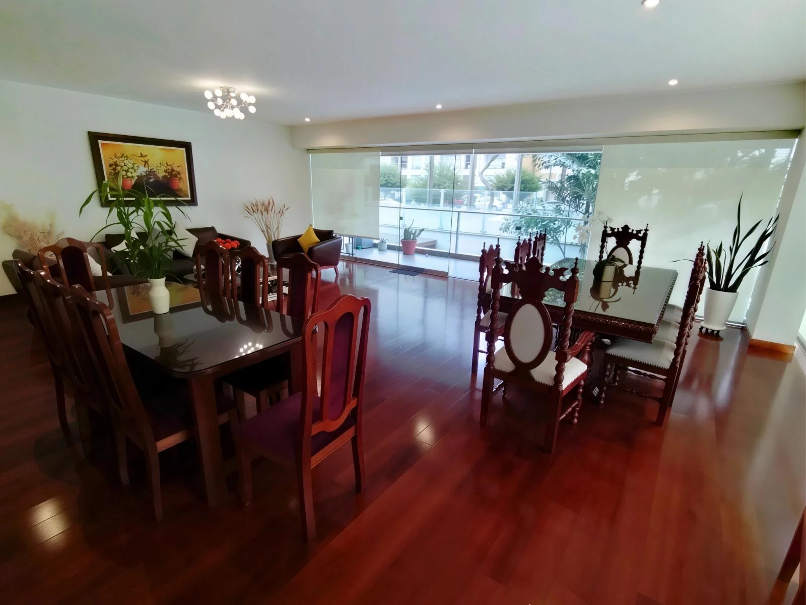 Amplia sala comedor con salida a una terraza espaciosa, ideal para reuniones o disfrutar del aire libre.