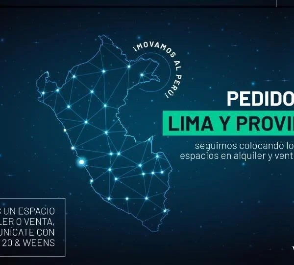 En WEENS y ESPACIO tenemos variados pedidos en venta y alquiler entre ellos LOCALES COMERCIALES que estamos seleccionando para nuestros clientes en LIMA y PROVINCIA Aqu algunos de los pedidos de locales que estamos requiriendo Si eres PROPIETARIO y deseas alquilar tu Local Comercial que esta en buena ubicacin escrbenos si deseas alquilarlo aqu nuestros pedidos actuales EN LIMA RESTAURANTE LNEA TOP Area De a m Distrito Miraflores San Isidro Surco Zona Comercial Exclusiva zona de restaurantes Entorno Zona segura turstica moderna alto trnsito GYM PILATES Area De a m Distrito Miraflores Surco Magdalena TIENDAS De a m Frente mnimo mlUbicaciones LIMA TOP LIMA MODERNA LIMA SUR LIMA CENTRO LIMA ESTE Jess Maria Callao Magdalena Santa Anita Los Olivos Lince Barranco San Juan de Lurigancho etc EN PROVINCIA Estamos buscando Locales que esten cerca a la Plazas de Armas GIRO AGENCIA BANCARIA Lugares Sicuani Huaraz Cajabamba Candarave Huancane Pachacamac Majes Jualiaca Piura Tambo Grande Motupe MoyobambaAreas a m LOCAL COMERCIAL RETAIL Lugares Arequipa Tacna Piura Cuscoreas a mContctanos YA y avanzaHagamos match para que ms negocios crezcan demos valor y rpidez en el servicio Creemos la comunidad ms grande para hacer crecer al PERWEENS el lugar donde estan los MEJORES ESPACIOS CORPORATIVOS y EMPRESAS CRECEN WEENS y ESPACIO COMPROMETIDOS CON EL DESARROLLO DEL PER WEENS CASAS MOOBINS y SEOR LOTE son marcas registrada del Holding Inmobiliario ms importante del PER ESPACIO especializados en COMERCIALIZACIN INMOBILIARIA