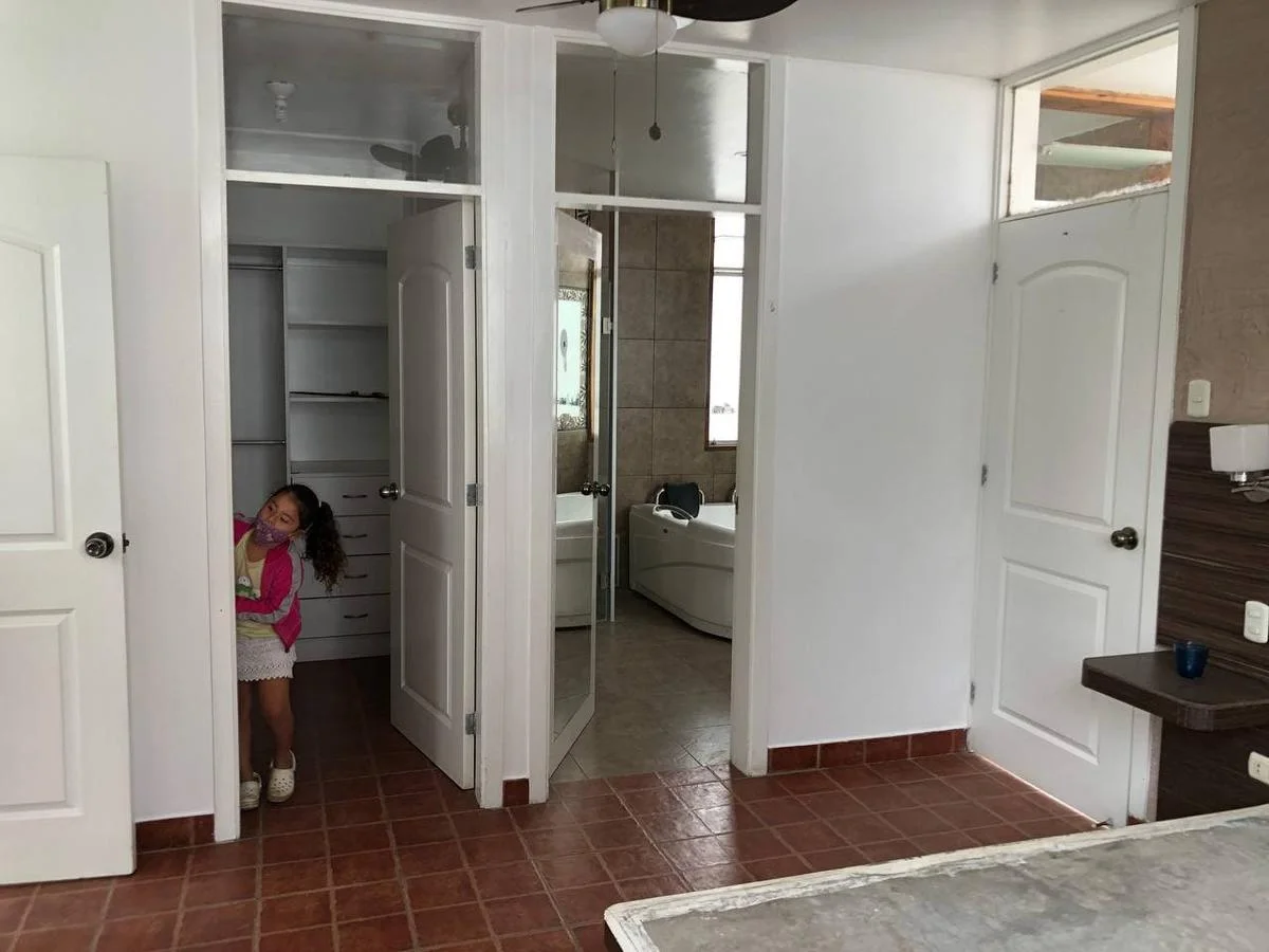 Cuarto principal con walking closets y baño con jacuzzi e hidromasajes para 2 personas y ducha. 1 balcón.