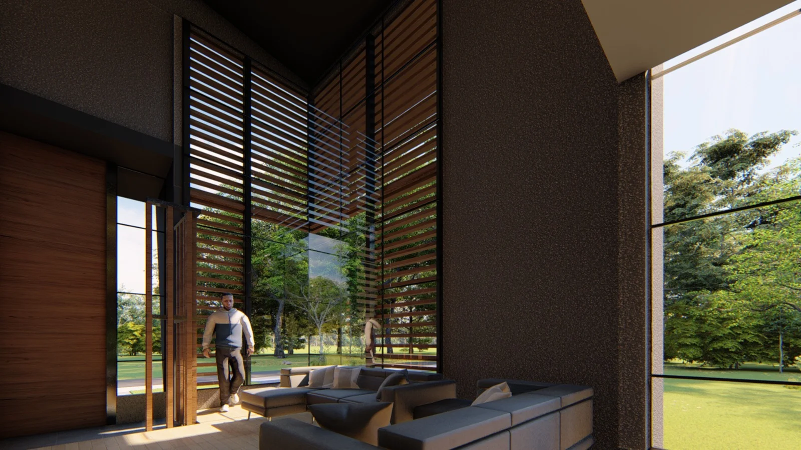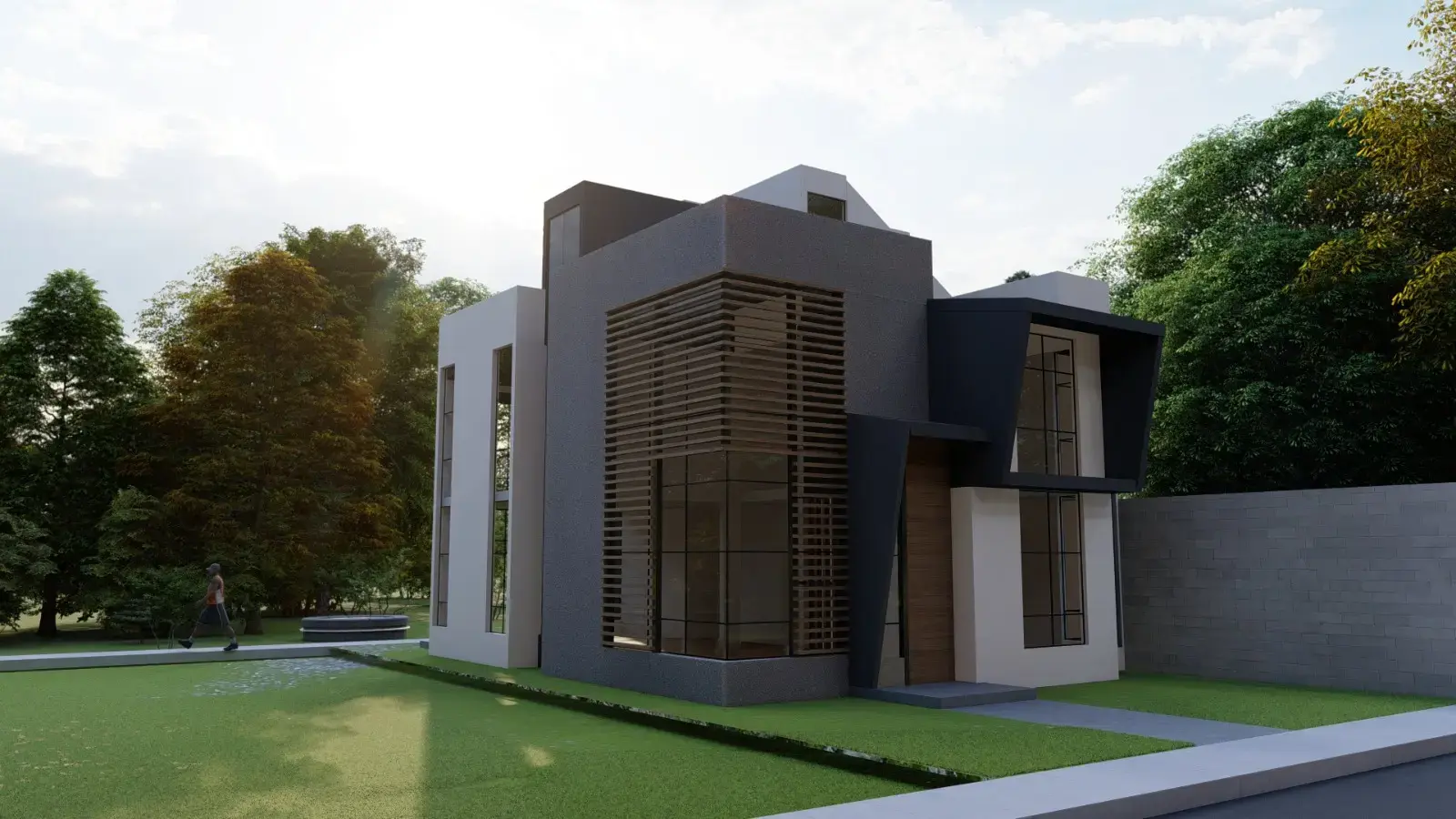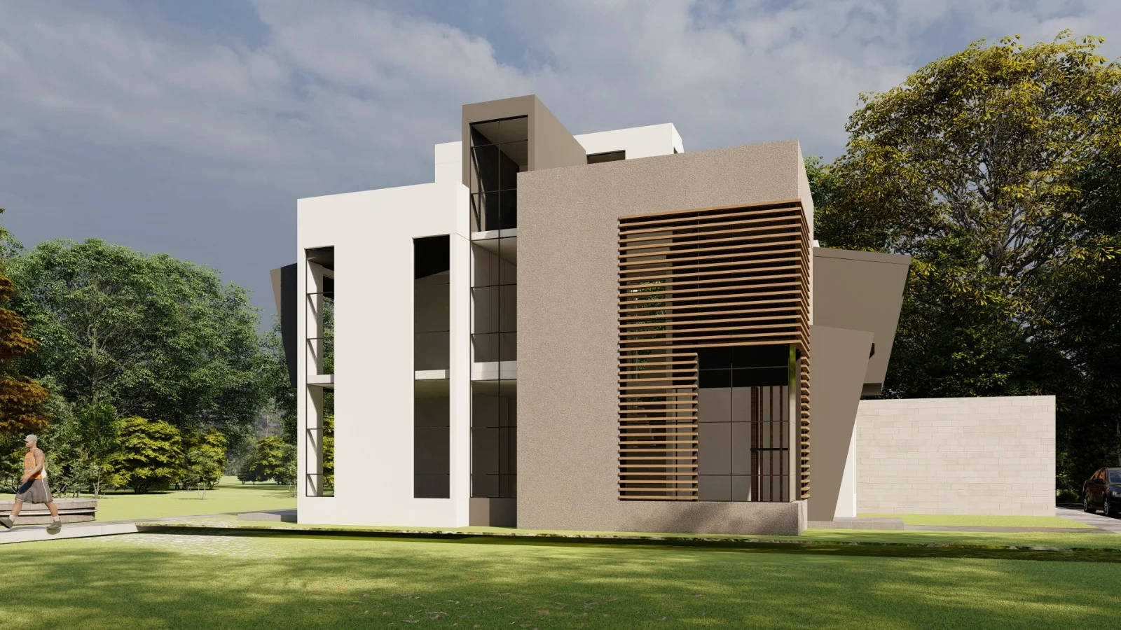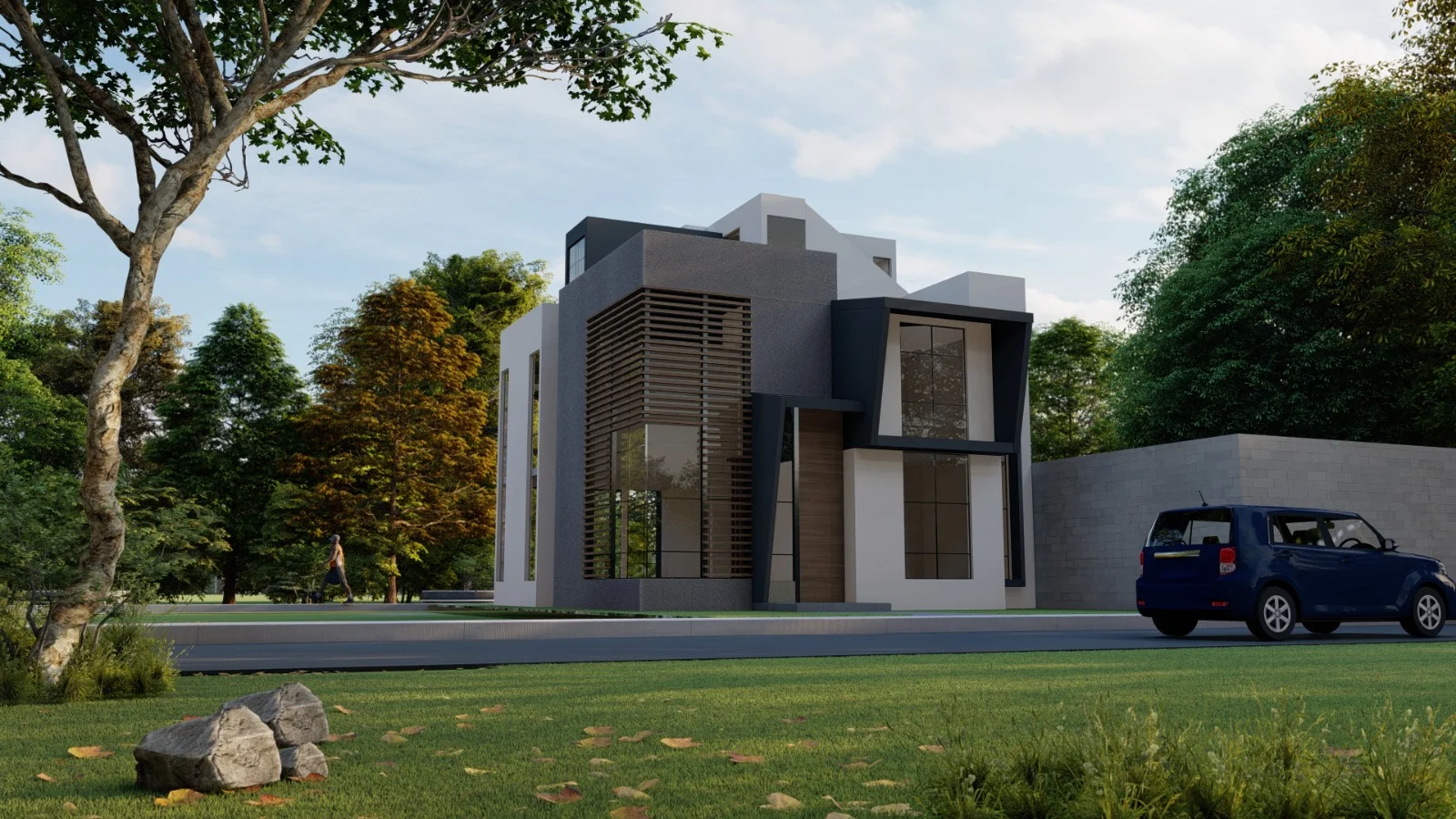 1er piso: Cochera para 02 vehiculos,01 estudio con baño completo, sala con doble altura, comedor, cocina,01 baño de visita.