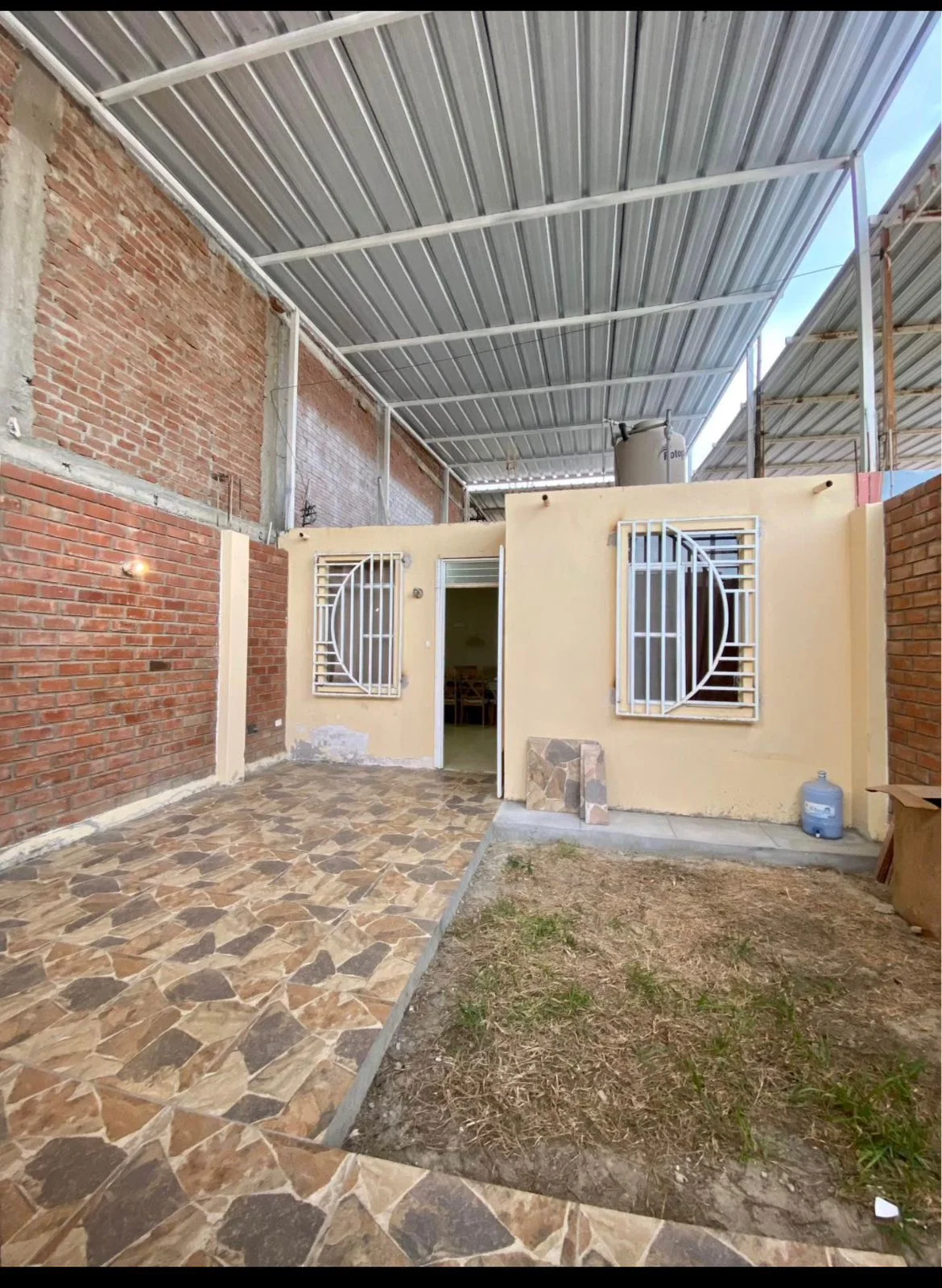 El inmueble cuenta con sala comedor, 2 habitaciones, baño, cocina con reposteros, lavandería, espacio privado y techado para cochera o patio, tanque elevado, agua 24h y es una zona segura con vigilancia particular 24/7.