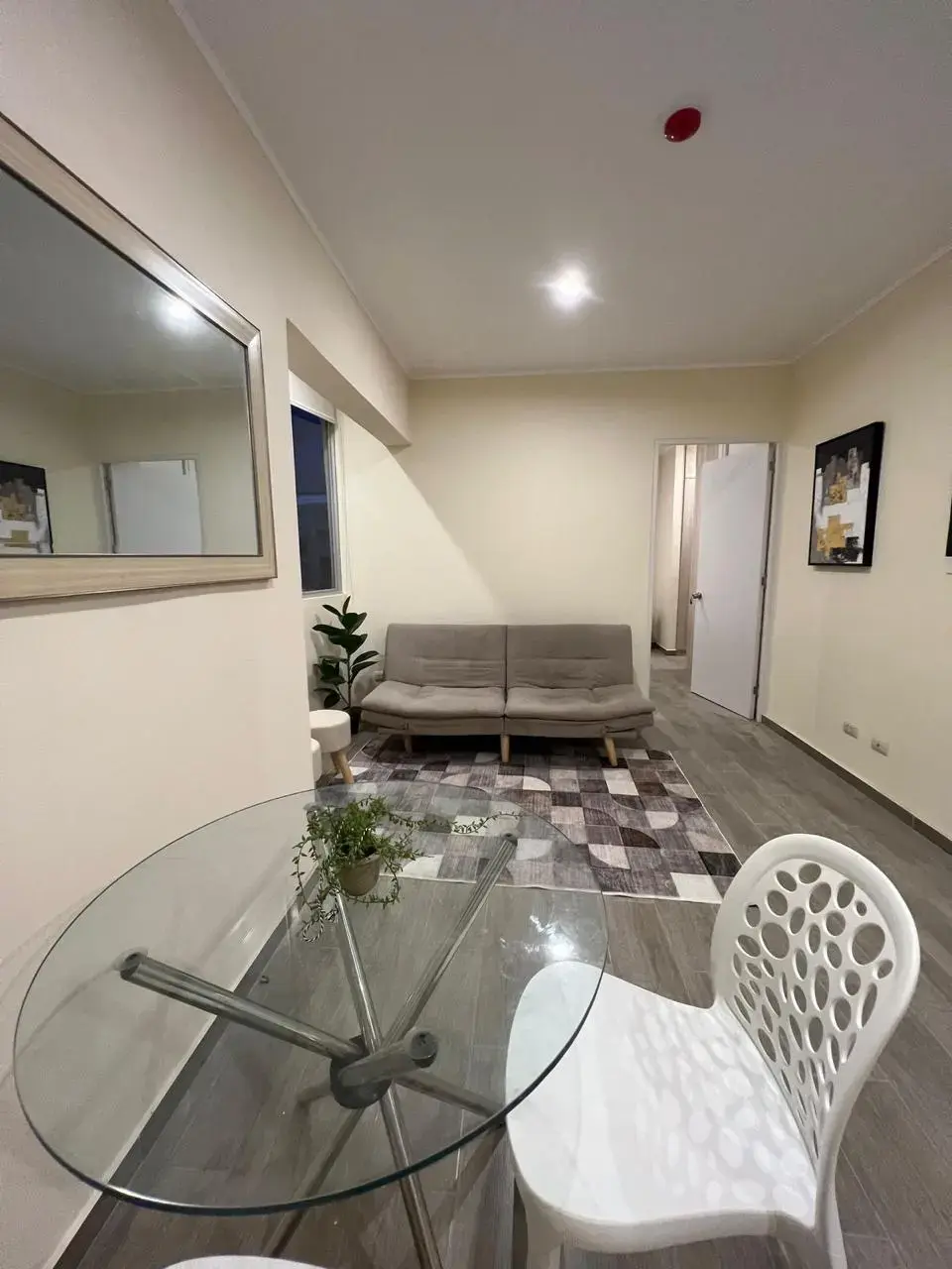 Cuenta con ascensor, una habitación, un baño, sala, comedor, kitchenette, lavandería, áreas sociales, áreas verdes, piscina y vigilancia las 24hrs.