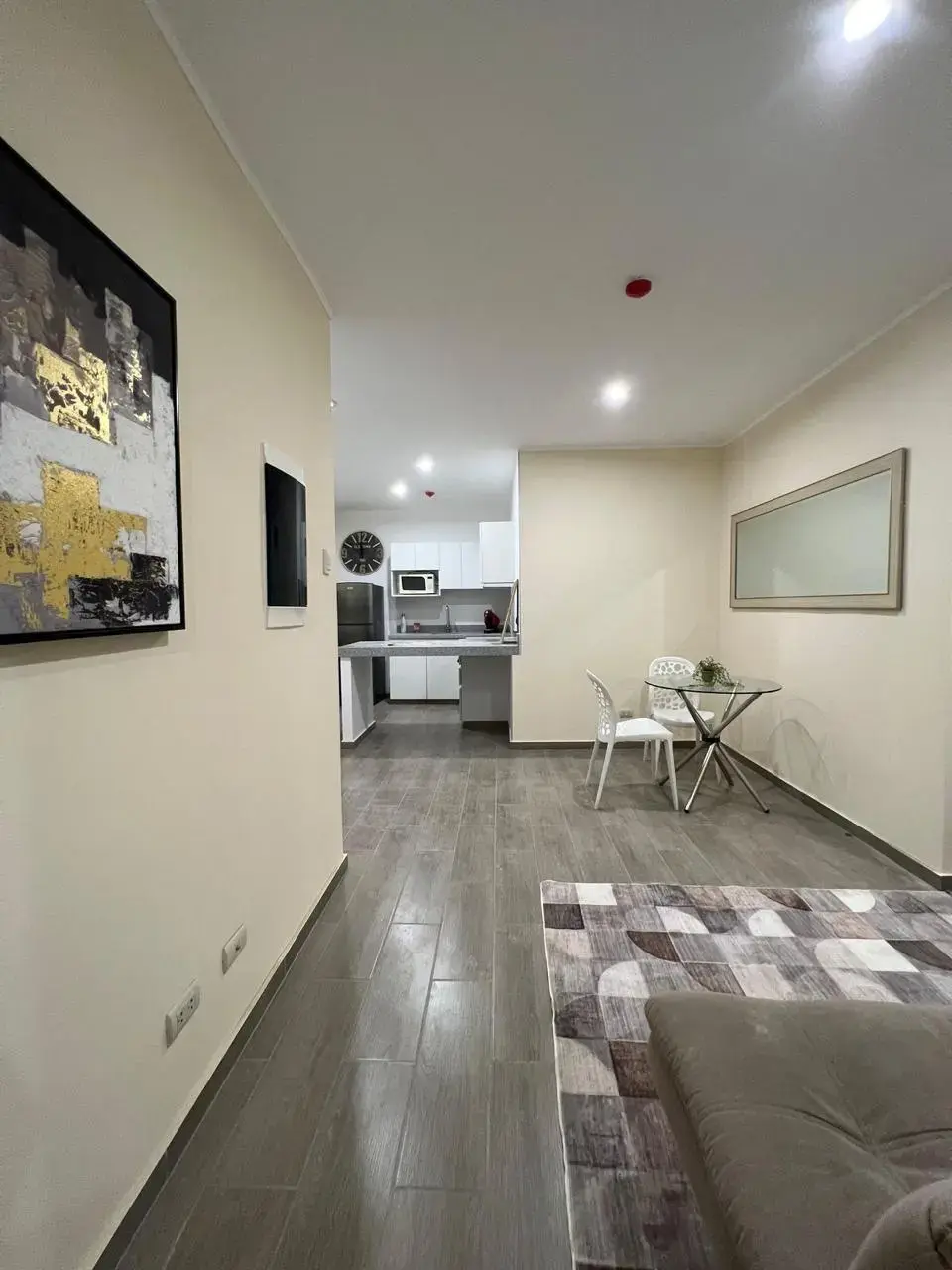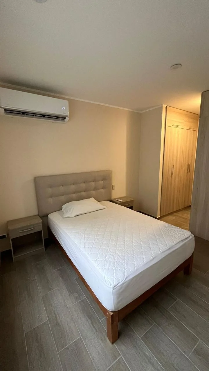 Amplio departamento ubicado en el 4to piso, cómodo, con una vista muy bonita a la calle, construido en una zona residencial moderna, tranquila y segura.