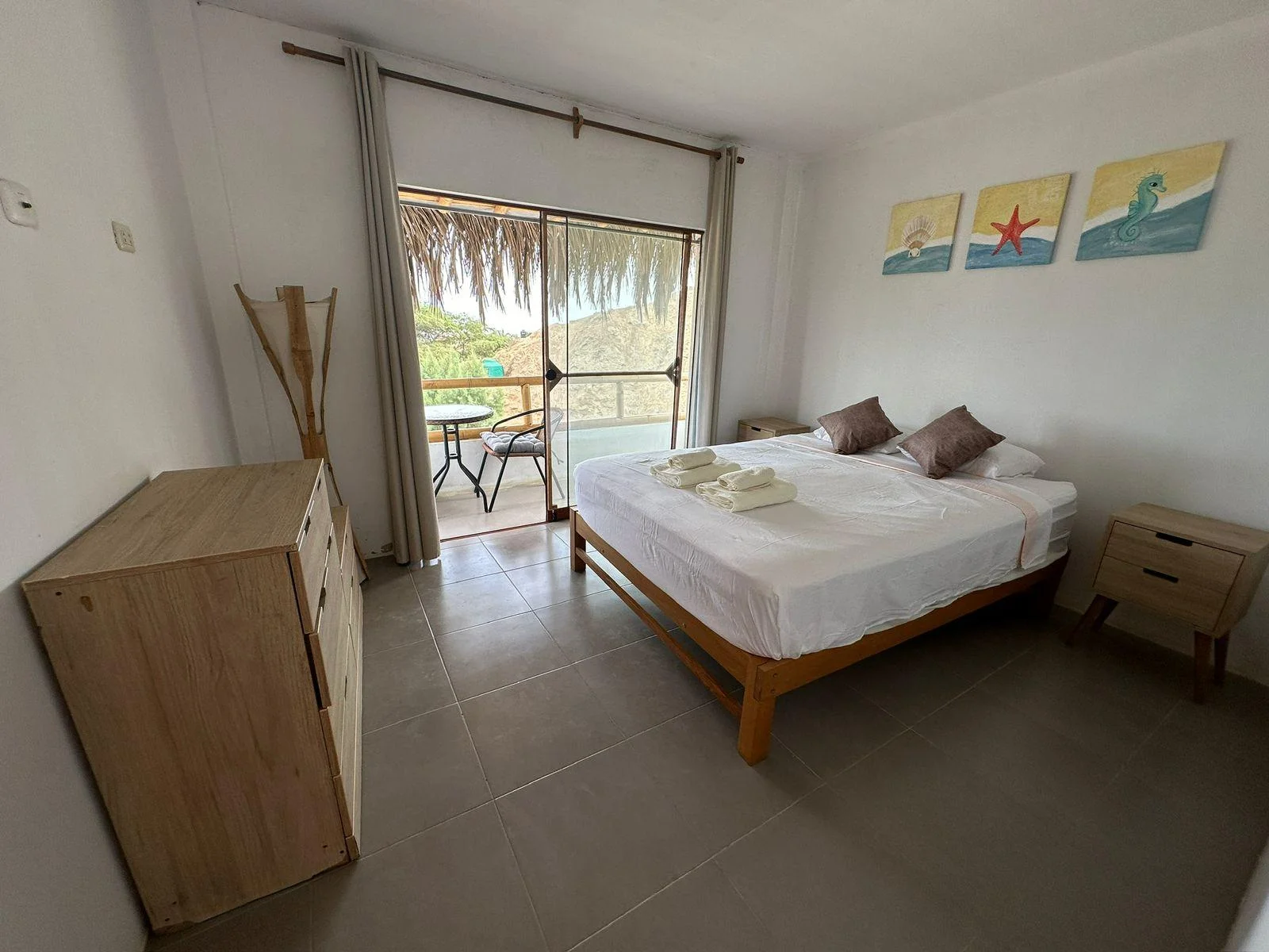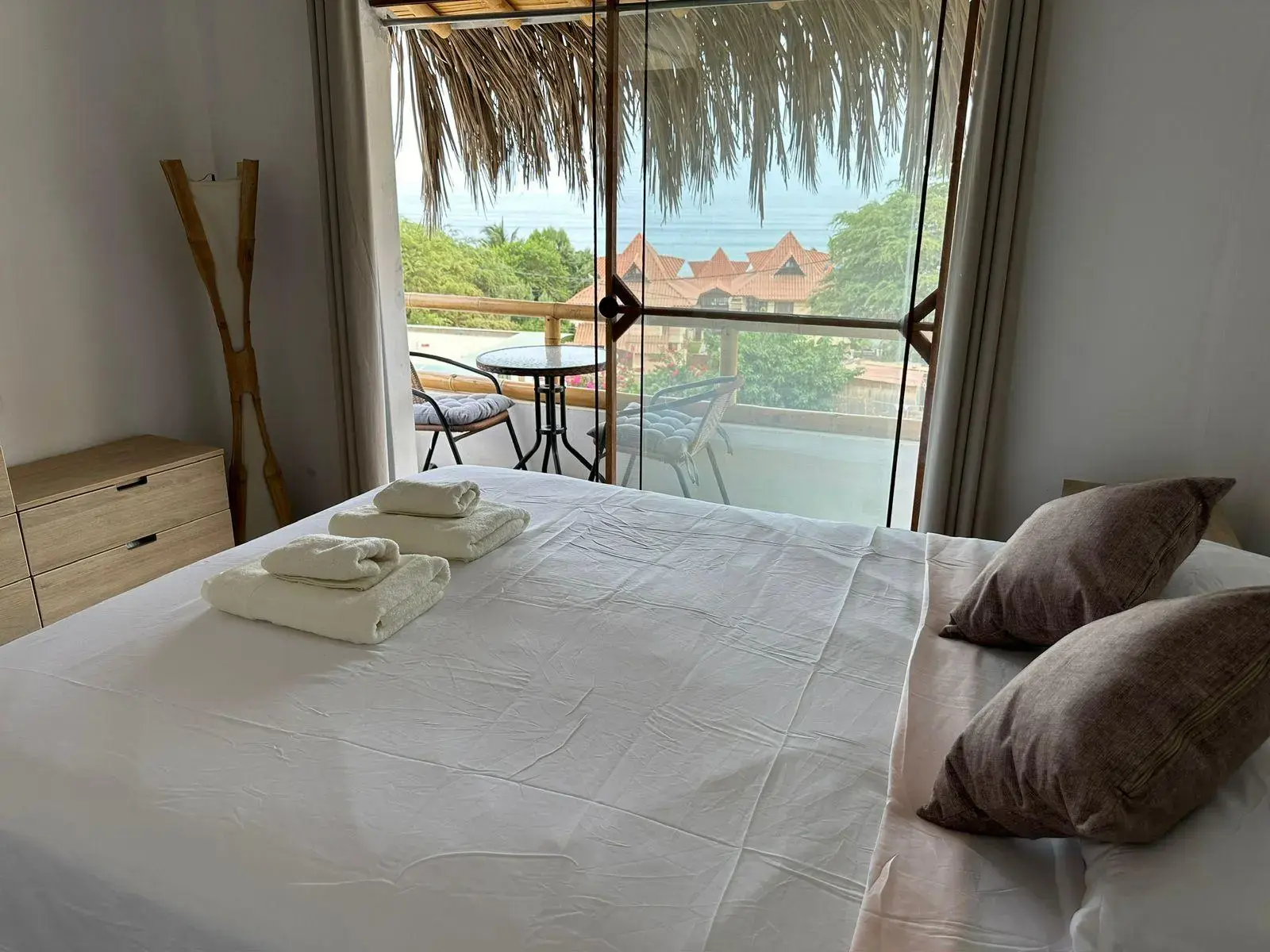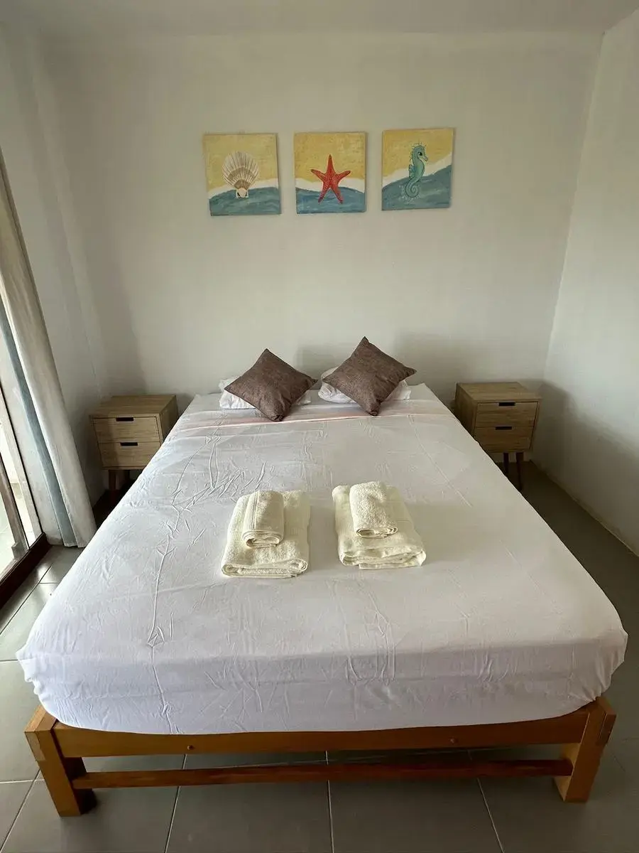 2 habitaciones, incluyendo una habitación principal con balcón y vista al mar.
