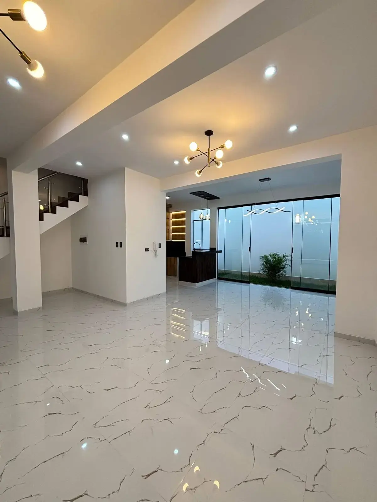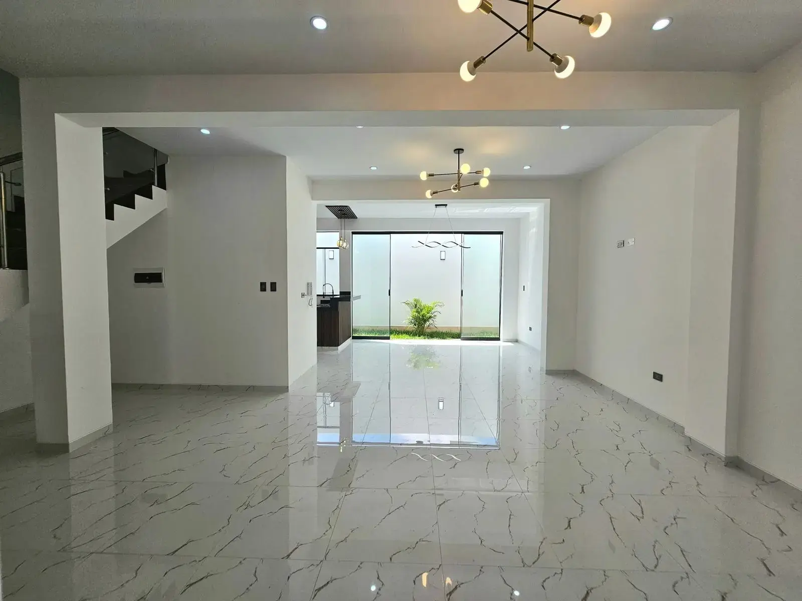 1er Piso: Amplia sala comedor, cocina con reposteros altos y bajos, patio trasero con jardín, medio baño de visitas, estacionamiento.